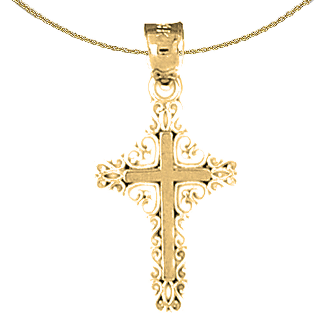 This is an elegant 14K or 18K gold cross pendant. This 14K or 18K gold pendant measures 27 mm in length by 14 mm in width. Measurement includes bale. JewelsObsession creates all gold jewelry in our state of the art manufacturing facility.