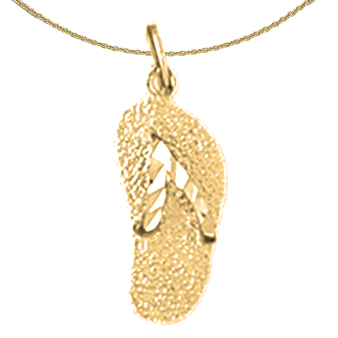 This is a beautiful 14K or 18K gold flip flop pendant. This 14K or 18K gold pendant measures 20 mm in length by 7 mm in width. Measurement includes bale. JewelsObsession creates all gold jewelry in our state of the art manufacturing facility.