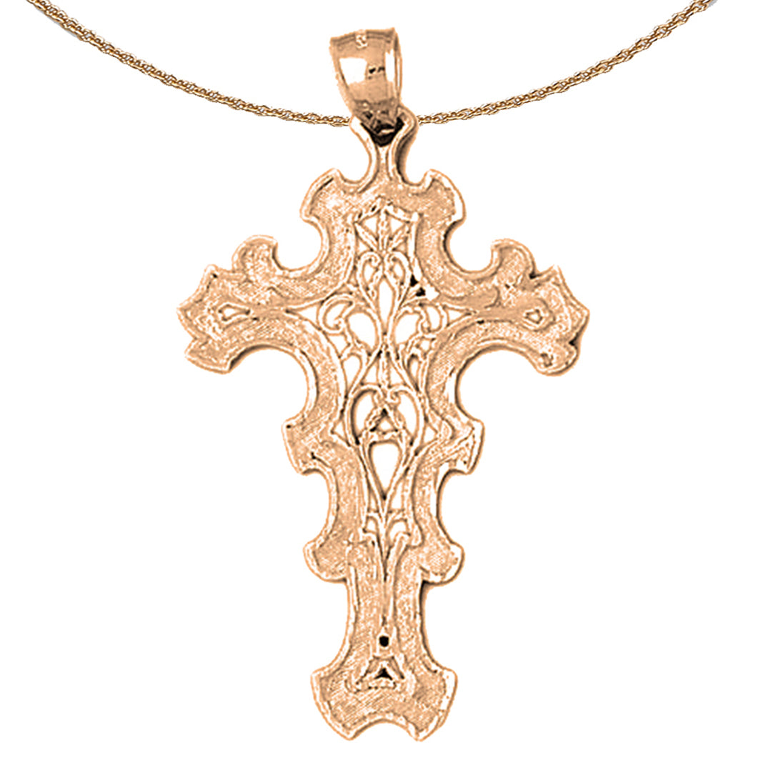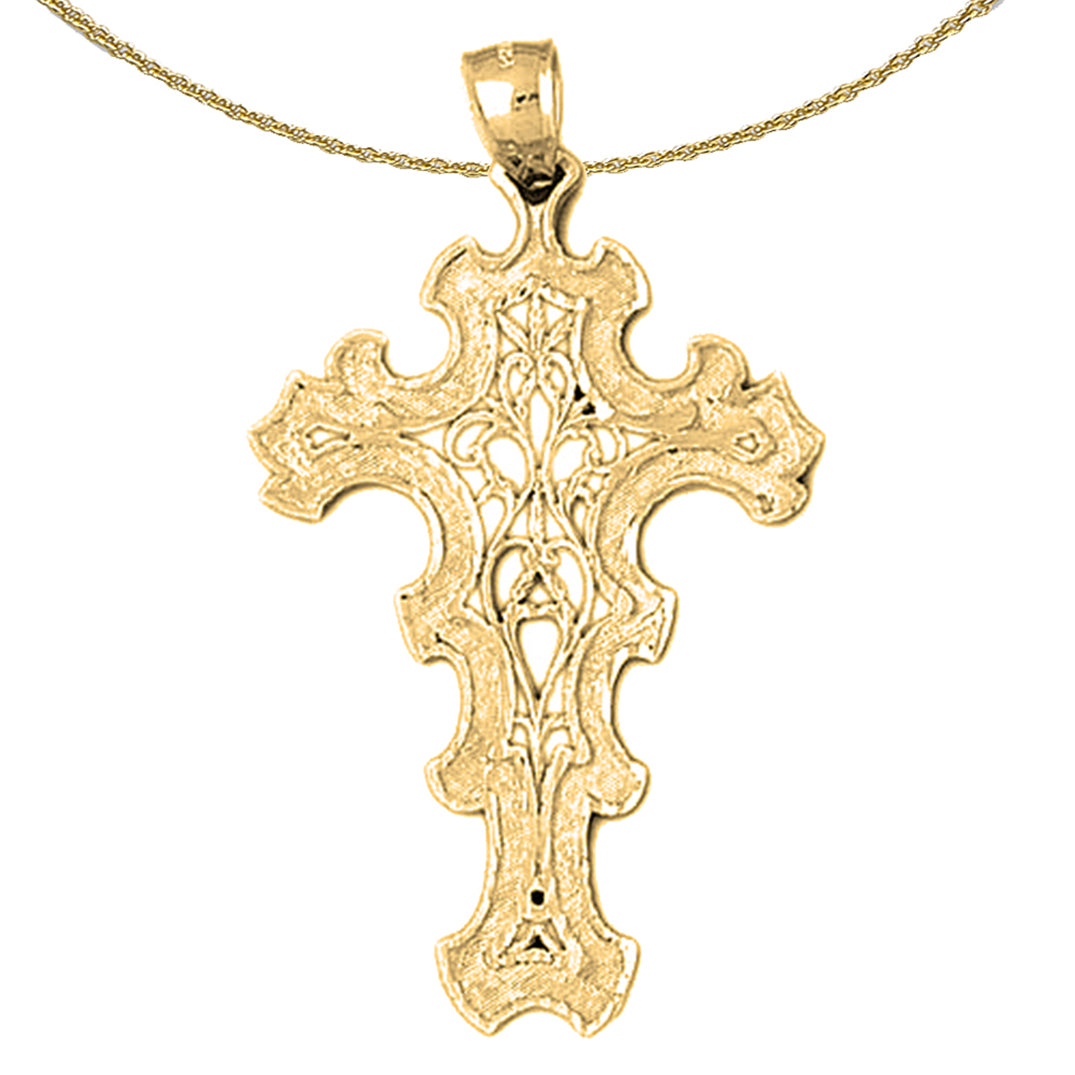This gorgeous 10K, 14K or 18K gold cross pendant. This 10K, 14K or 18K gold pendant measures 55 mm in length by 42 mm in width. Measurement includes bale. JewelsObsession creates all gold jewelry in our state of the art manufacturing facility.