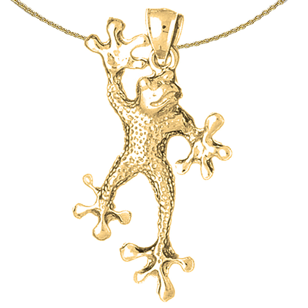 This is a stunning 10K, 14K or 18K gold frog pendant. This 10K, 14K or 18K gold pendant measures 45 mm in length by 24 mm in width. Measurement includes bale. JewelsObsession creates all gold jewelry in our state of the art manufacturing facility.