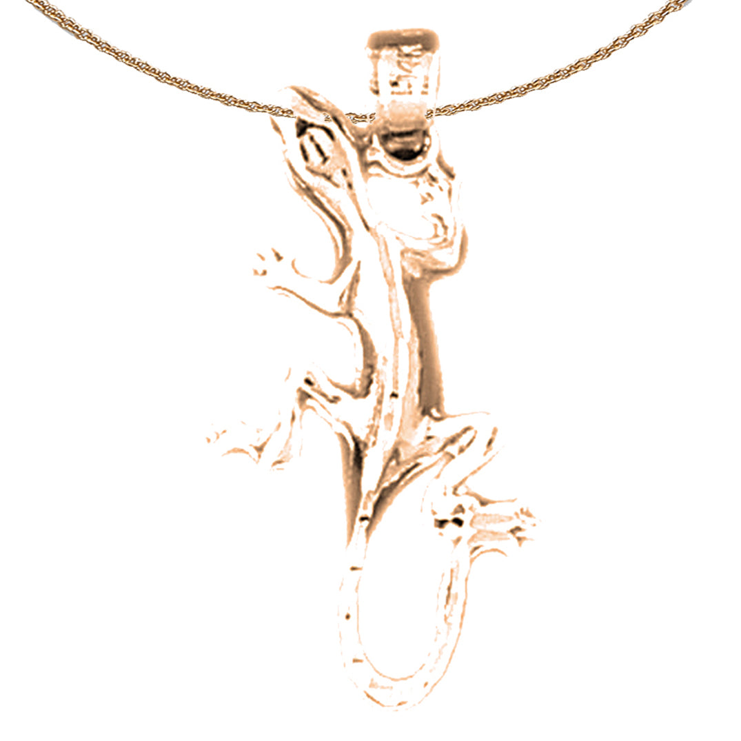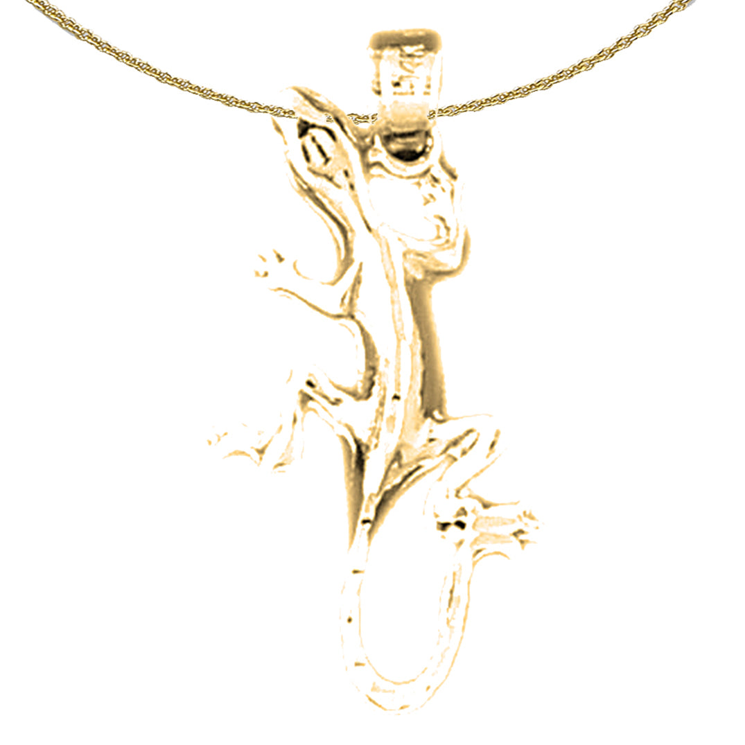 This is an elegant 14K or 18K gold gecco pendant. This 14K or 18K gold pendant measures 29 mm in length by 15 mm in width. Measurement includes bale. JewelsObsession creates all gold jewelry in our state of the art manufacturing facility.