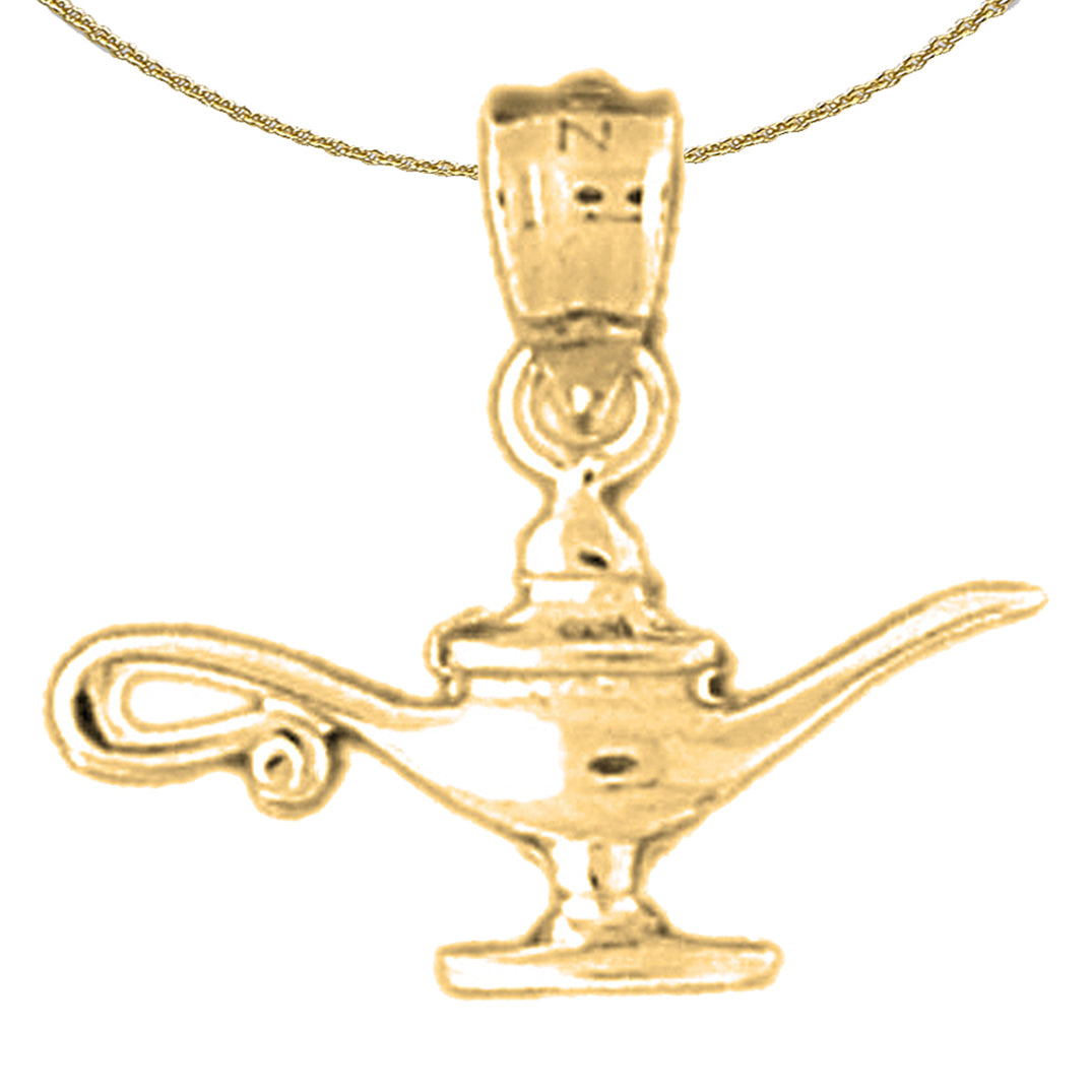 This is a beautiful 14K or 18K gold gene lamp pendant. This 14K or 18K gold pendant measures 17 mm in length by 19 mm in width. Measurement includes bale. JewelsObsession creates all gold jewelry in our state of the art manufacturing facility.