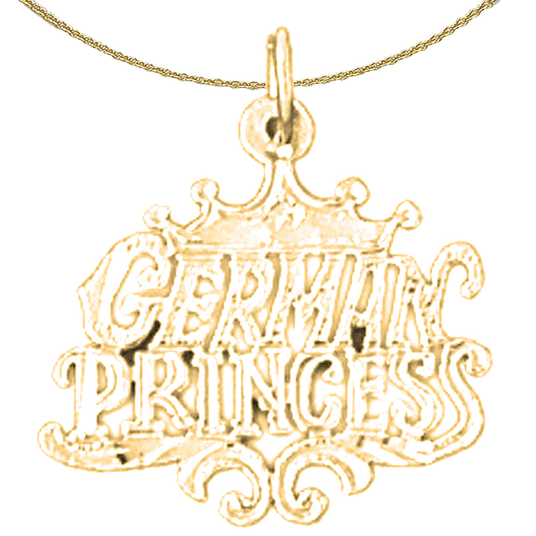 This is a beautiful 14K or 18K gold german pricess pendant. This 14K or 18K gold pendant measures in length by in width. Measurement includes bale. JewelsObsession creates all gold jewelry in our state of the art manufacturing facility.