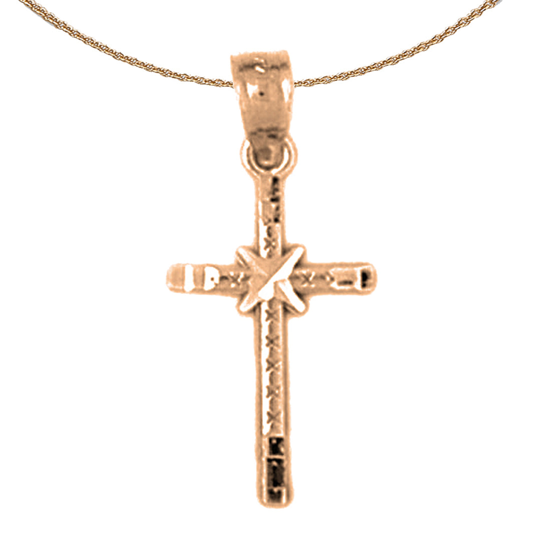 This is a beautiful 14K or 18K gold cross pendant. This 14K or 18K gold pendant measures 21 mm in length by 10 mm in width. Measurement includes bale. JewelsObsession creates all gold jewelry in our state of the art manufacturing facility.