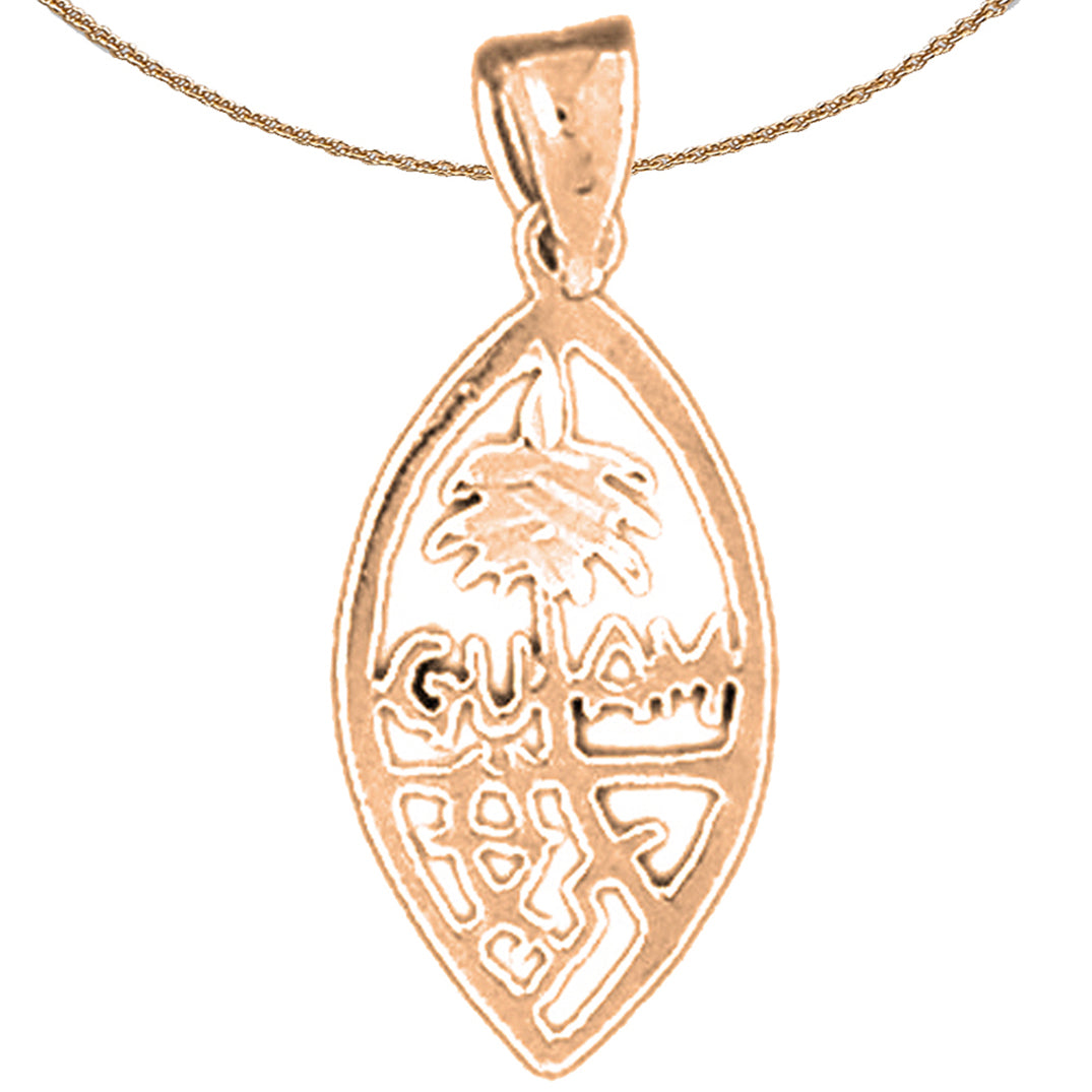 This is an elegant 14K or 18K gold guam pendant. This 14K or 18K gold pendant measures 25 mm in length by 11 mm in width. Measurement includes bale. JewelsObsession creates all gold jewelry in our state of the art manufacturing facility.