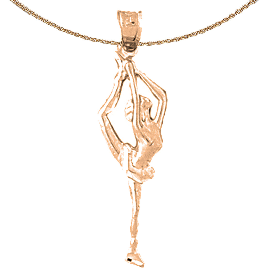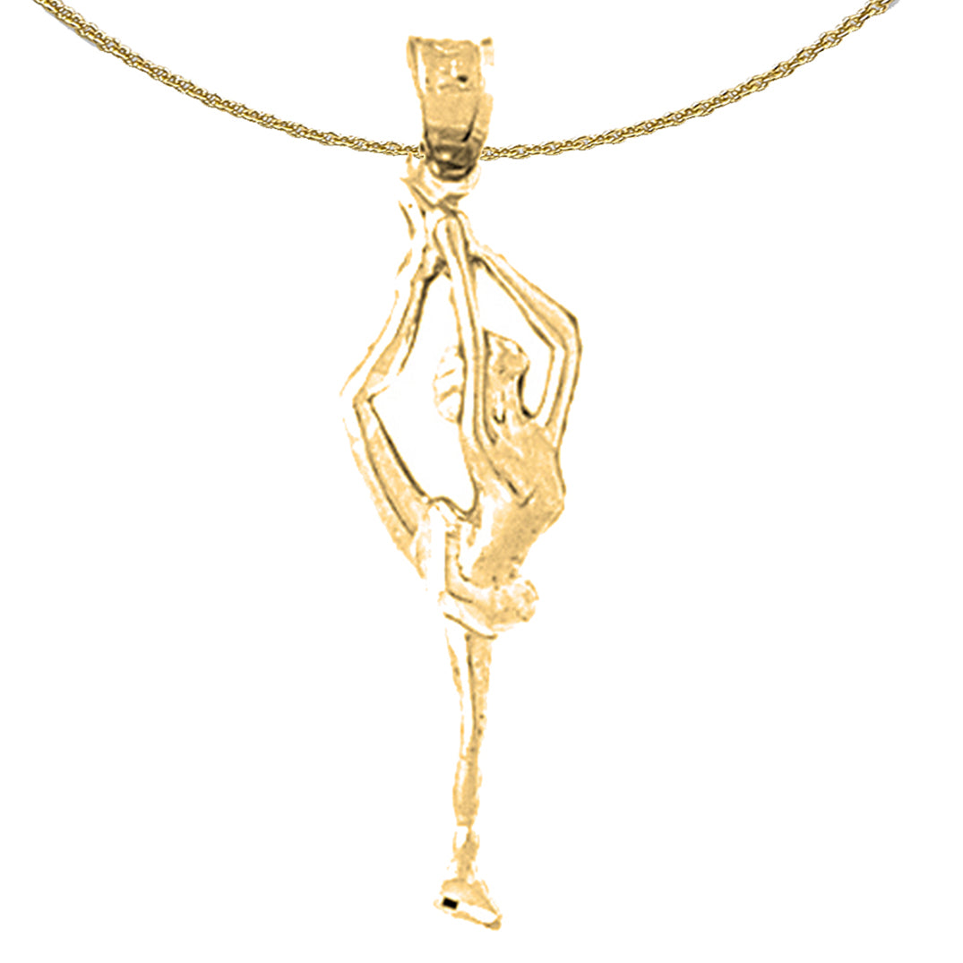 This is a stunning 14K or 18K gold gymnast pendant. This 14K or 18K gold pendant measures 32 mm in length by 8 mm in width. Measurement includes bale. JewelsObsession creates all gold jewelry in our state of the art manufacturing facility.