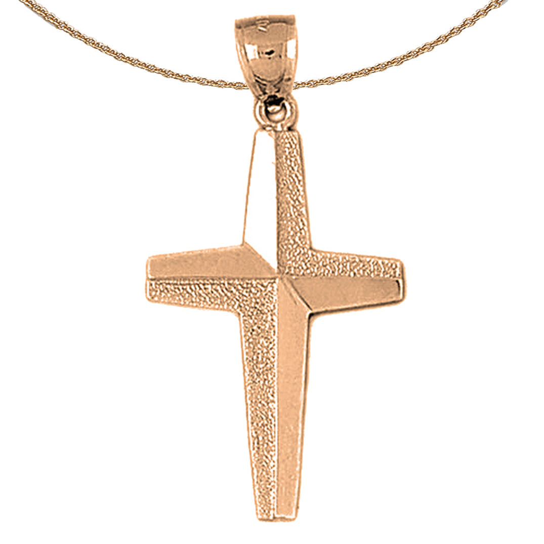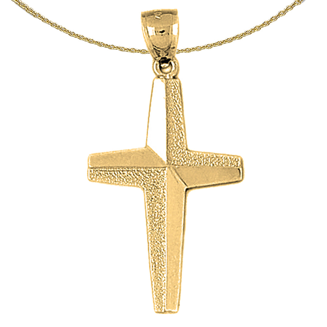 This gorgeous 10K, 14K or 18K gold cross pendant. This 10K, 14K or 18K gold pendant measures 43 mm in length by 22 mm in width. Measurement includes bale. JewelsObsession creates all gold jewelry in our state of the art manufacturing facility.