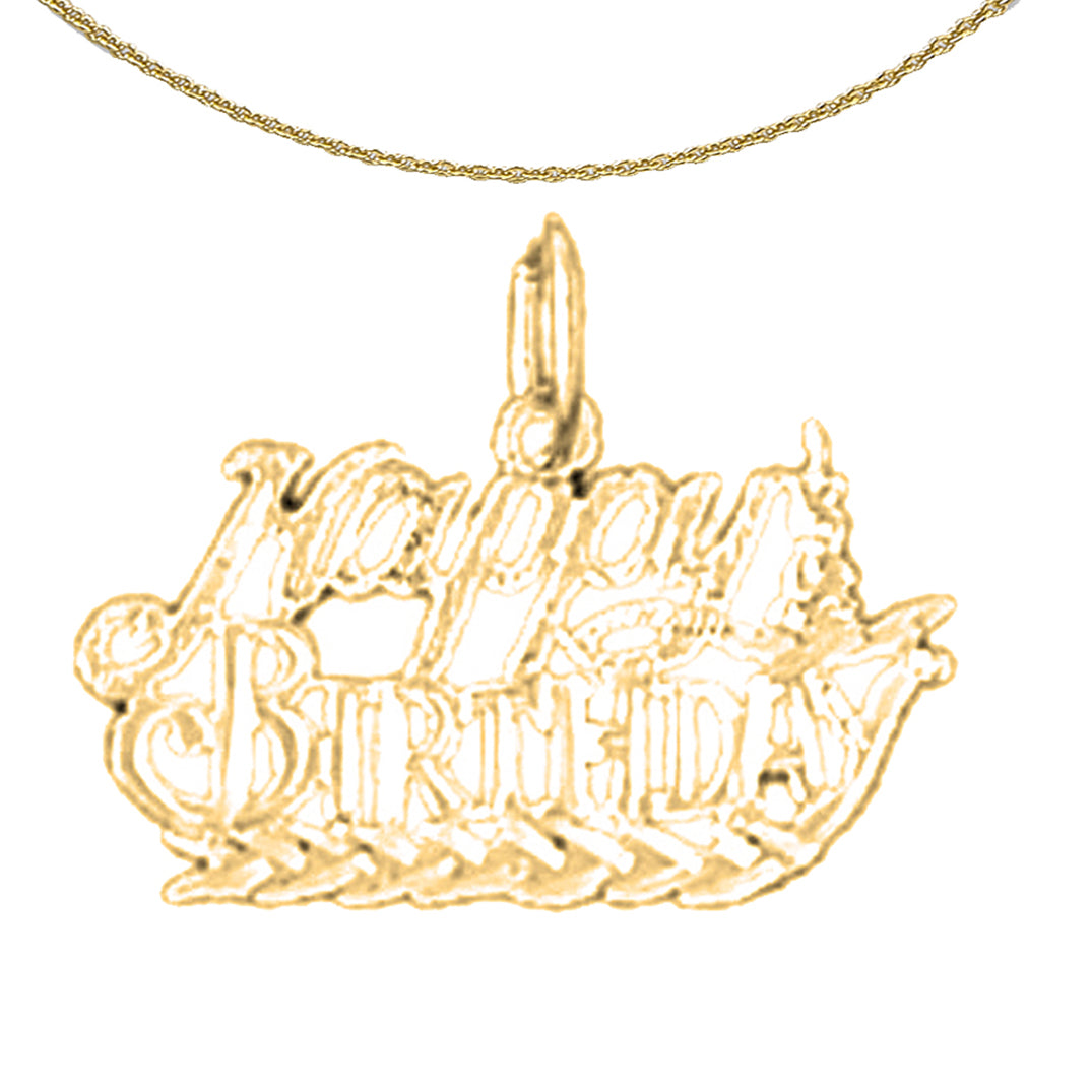 This is a beautiful 14K or 18K gold happy birthday pendant. This 14K or 18K gold pendant measures in length by in width. Measurement includes bale. JewelsObsession creates all gold jewelry in our state of the art manufacturing facility.