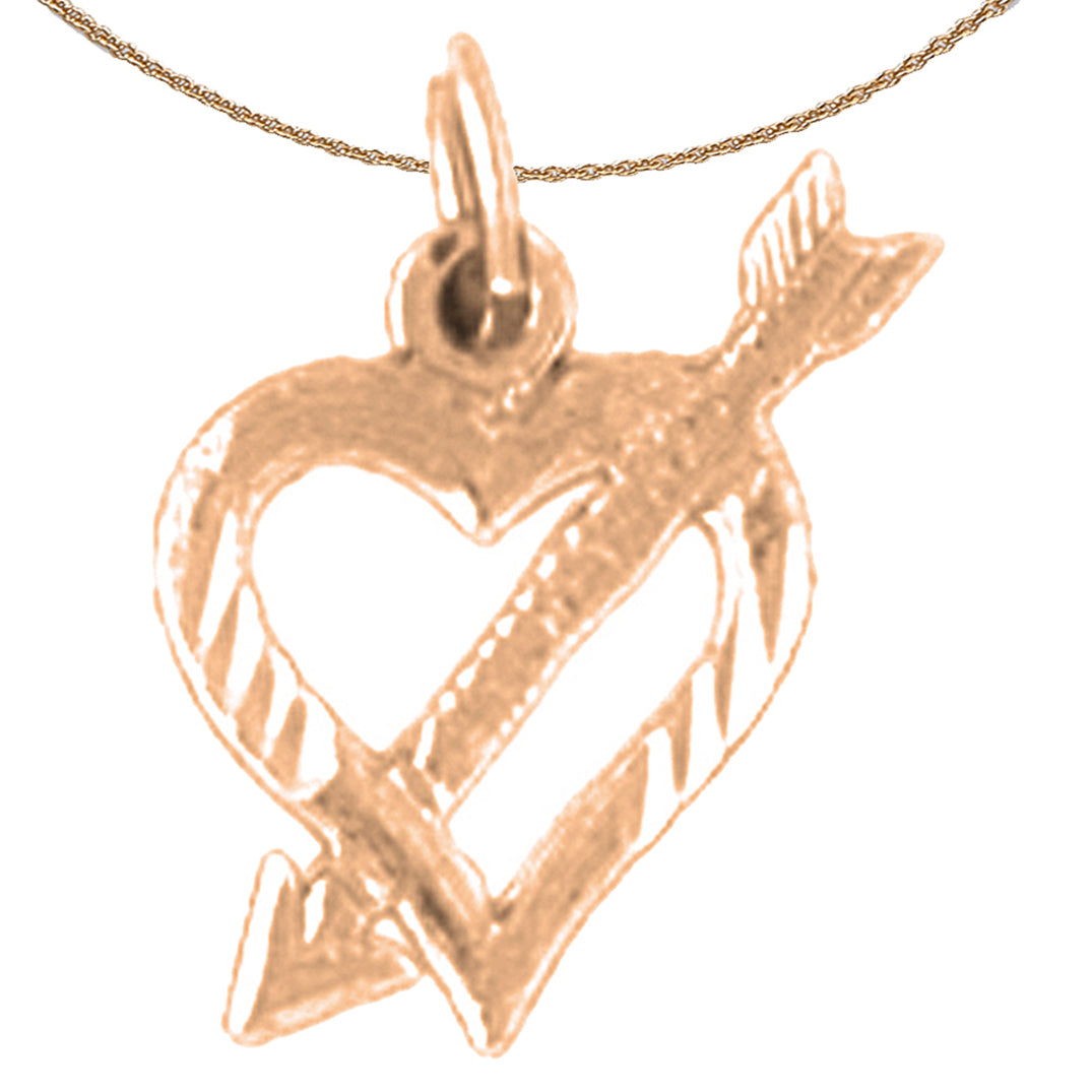 This is a stunning 14K or 18K gold heart and arrow pendant. This 14K or 18K gold pendant measures 15 mm in length by 11 mm in width. Measurement includes bale. JewelsObsession creates all gold jewelry in our state of the art manufacturing facility.