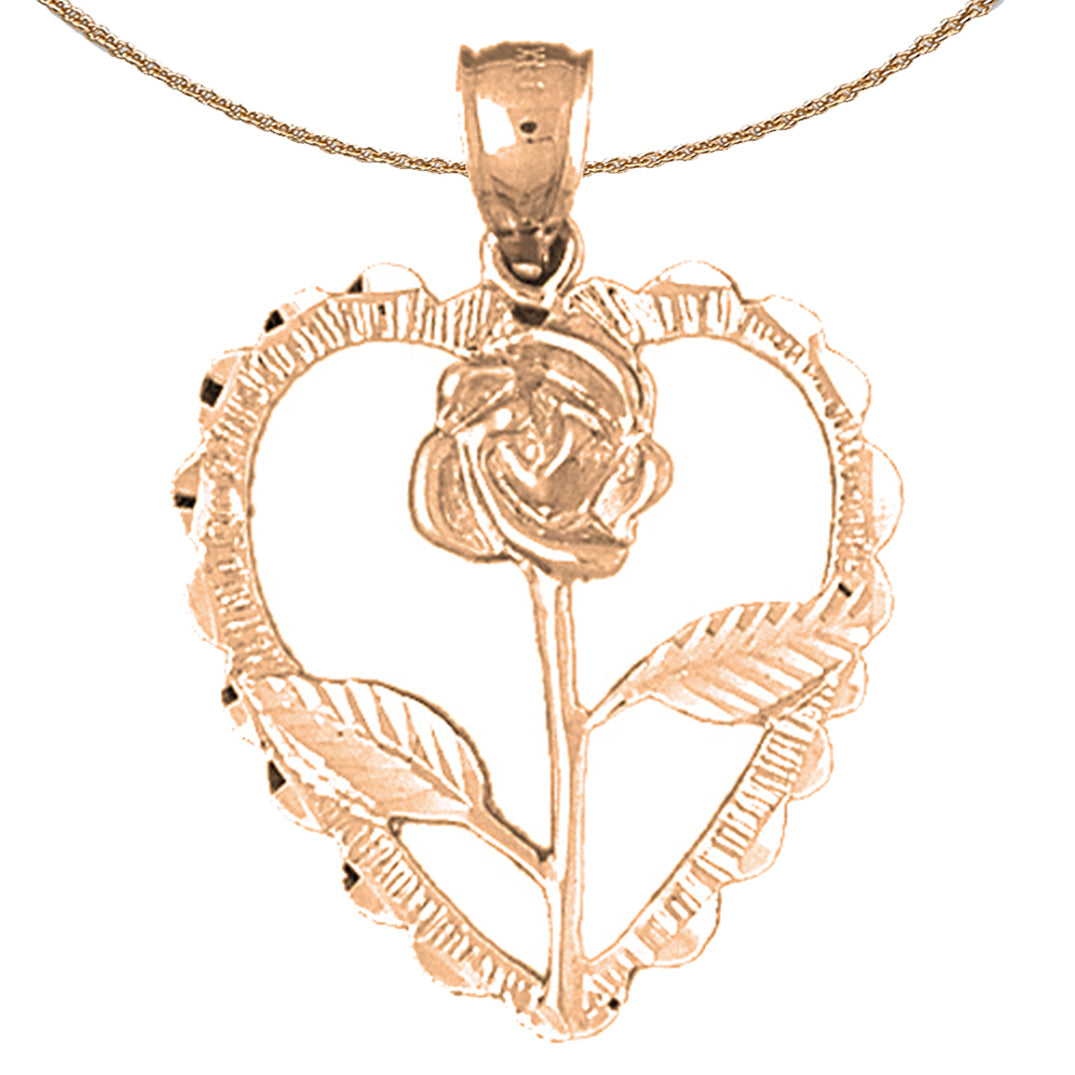 10K, 14K or 18K Gold Heart With Rose Pendant