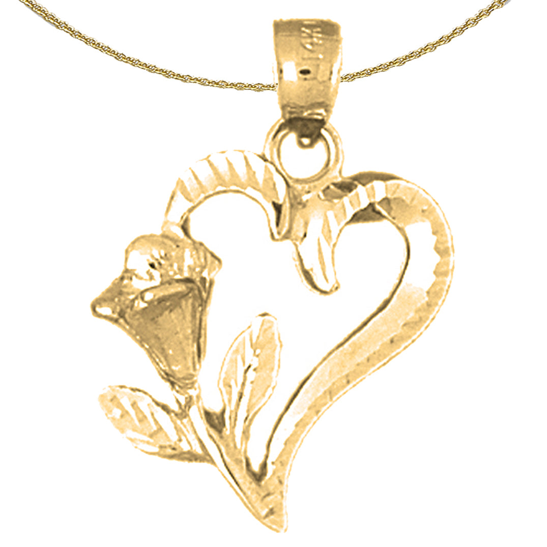 10K, 14K or 18K Gold Heart With Rose Pendant