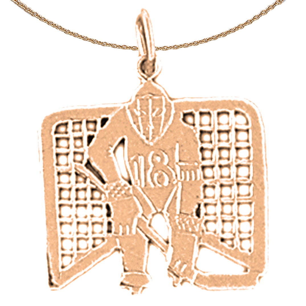This is a stunning 14K or 18K gold hockey player goalie pendant. This 14K or 18K gold pendant measures 23 mm in length by 19 mm in width. Measurement includes bale. JewelsObsession creates all gold jewelry in our state of the art manufacturing facility.