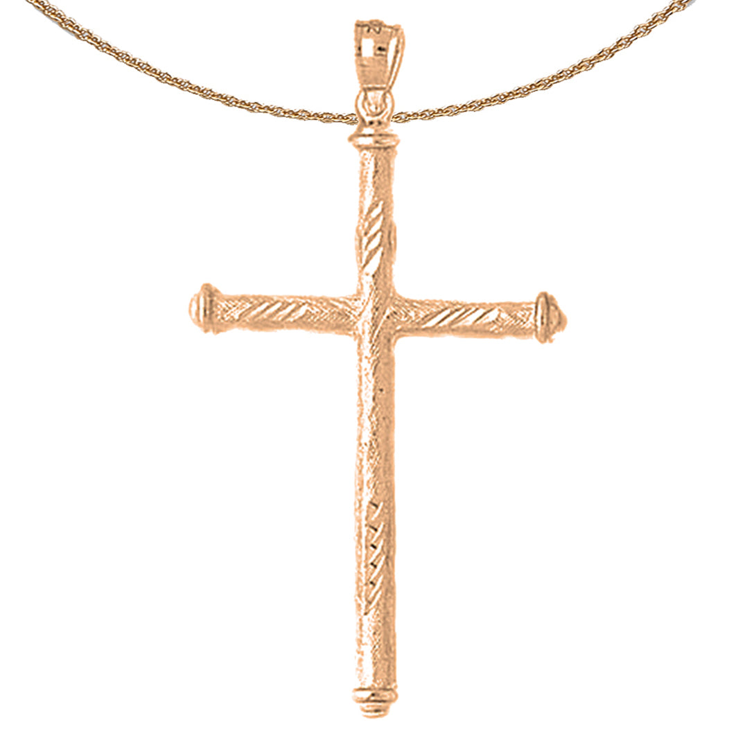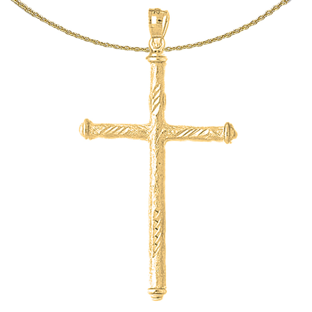 This gorgeous 10K, 14K or 18K gold cross pendant. This 10K, 14K or 18K gold pendant measures 54 mm in length by 29 mm in width. Measurement includes bale. JewelsObsession creates all gold jewelry in our state of the art manufacturing facility.