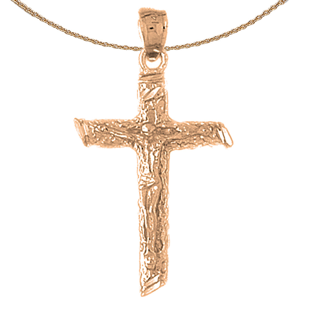 This gorgeous 10K, 14K or 18K gold crucifix pendant. This 10K, 14K or 18K gold pendant measures 37 mm in length by 21 mm in width. Measurement includes bale. JewelsObsession creates all gold jewelry in our state of the art manufacturing facility.