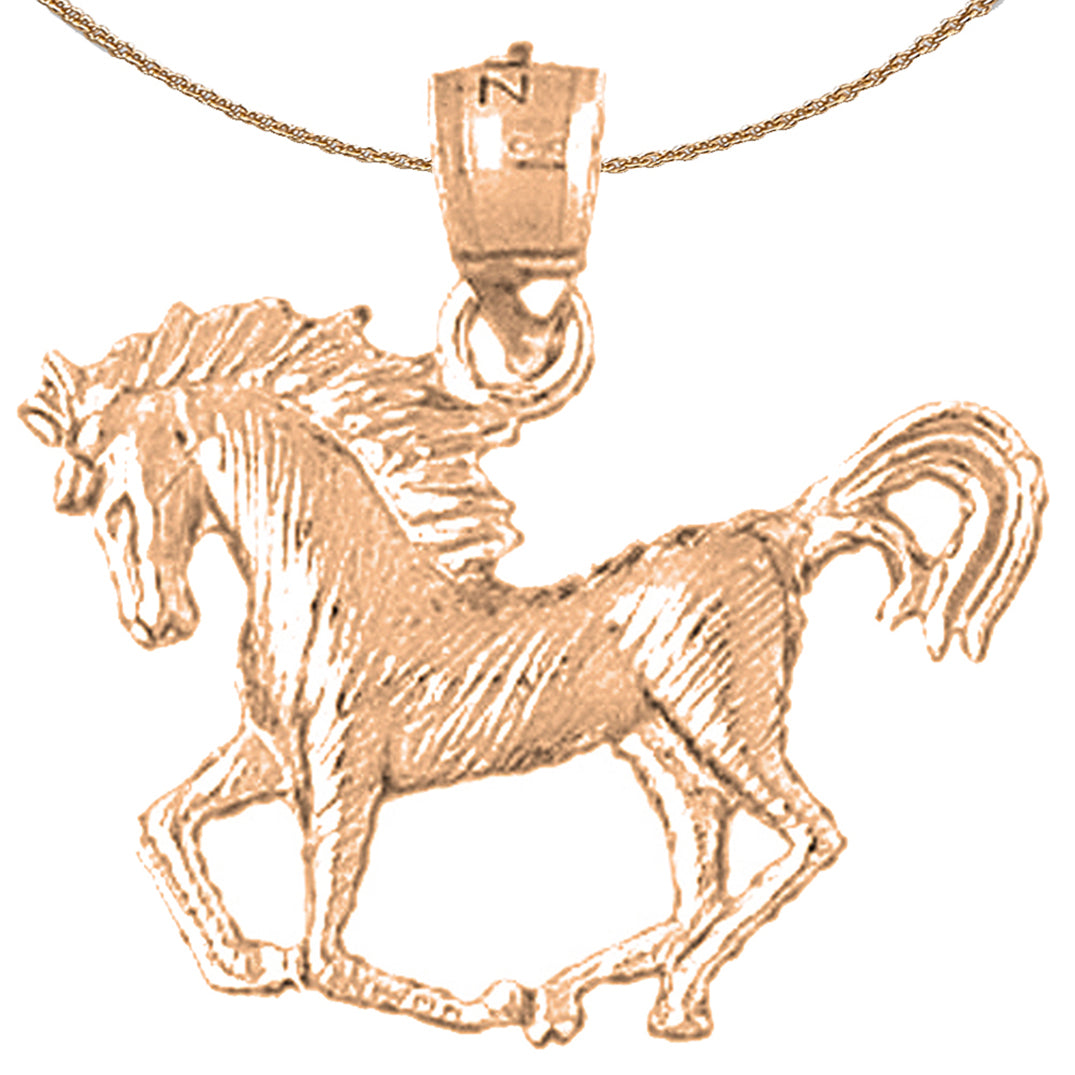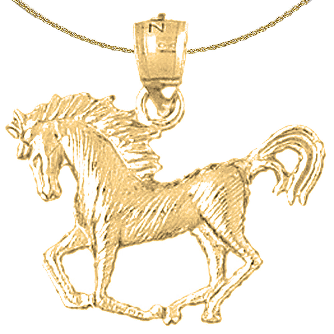 This is a beautiful 14K or 18K gold horse pendant. This 14K or 18K gold pendant measures 20 mm in length by 21 mm in width. Measurement includes bale. JewelsObsession creates all gold jewelry in our state of the art manufacturing facility.