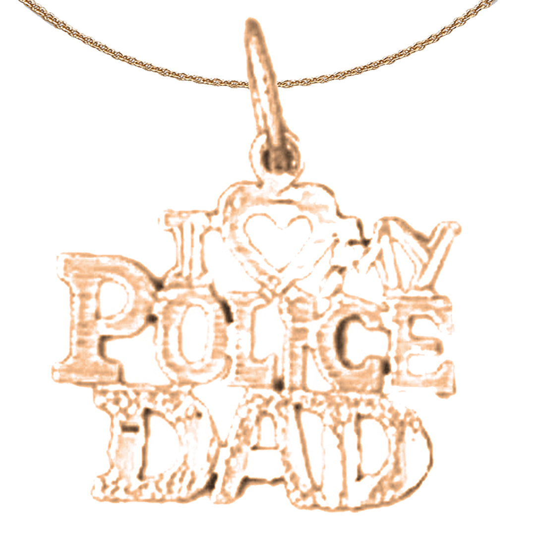 This is a beautiful 14K or 18K gold i love my police dad pendant. This 14K or 18K gold pendant measures in length by in width. Measurement includes bale. JewelsObsession creates all gold jewelry in our state of the art manufacturing facility.
