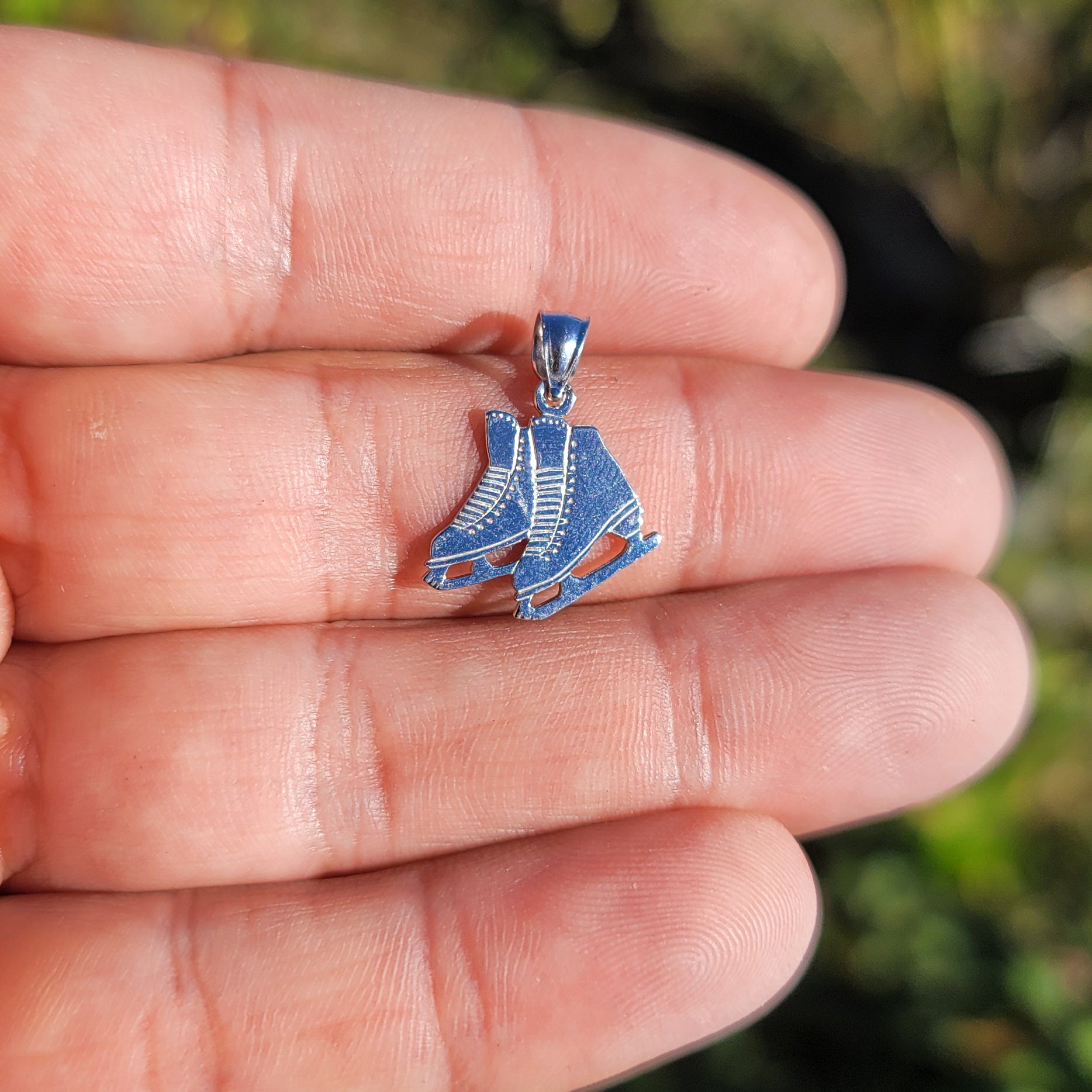 This is an elegant 14K or 18K gold ice skate pendant. This 14K or 18K gold pendant measures 18 mm in length by 16 mm in width. Measurement includes bale. JewelsObsession creates all gold jewelry in our state of the art manufacturing facility.