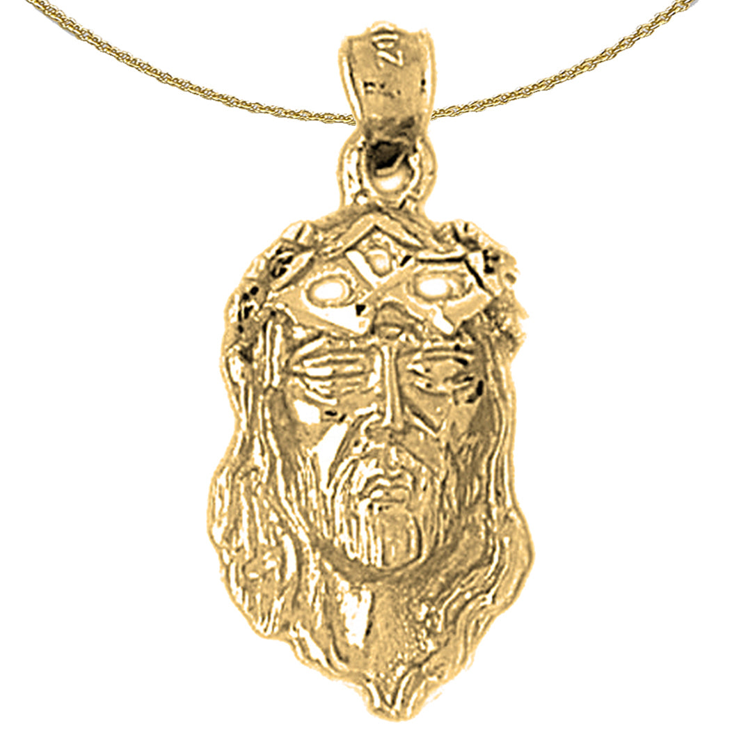 This is a beautiful 10K, 14K or 18K gold jesus pendant. This 10K, 14K or 18K gold pendant measures 30 mm in length by 13 mm in width. Measurement includes bale. JewelsObsession creates all gold jewelry in our state of the art manufacturing facility.