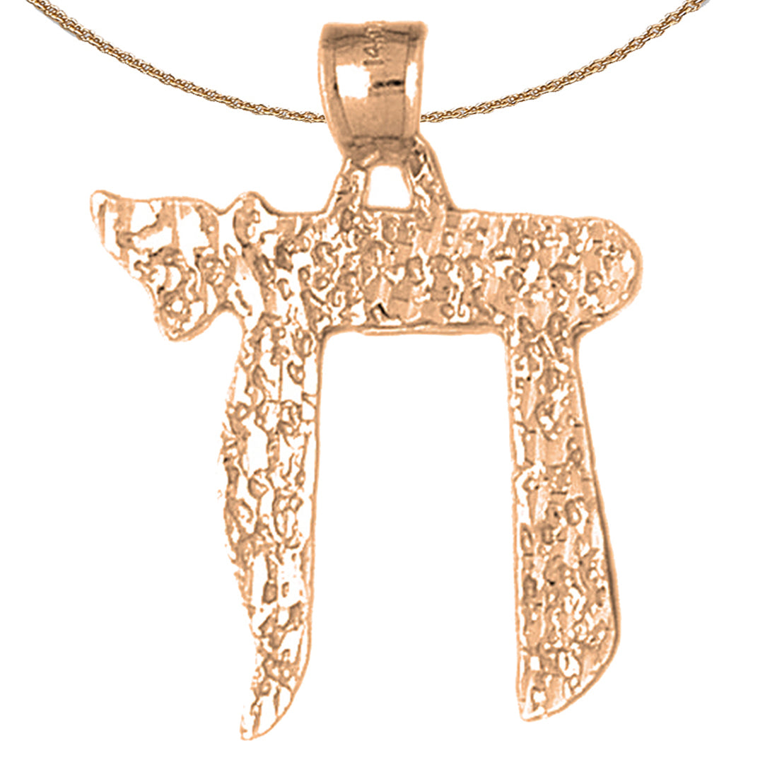 This gorgeous 10K, 14K or 18K gold chais pendant. This 10K, 14K or 18K gold pendant measures 36 mm in length by 28 mm in width. Measurement includes bale. JewelsObsession creates all gold jewelry in our state of the art manufacturing facility.