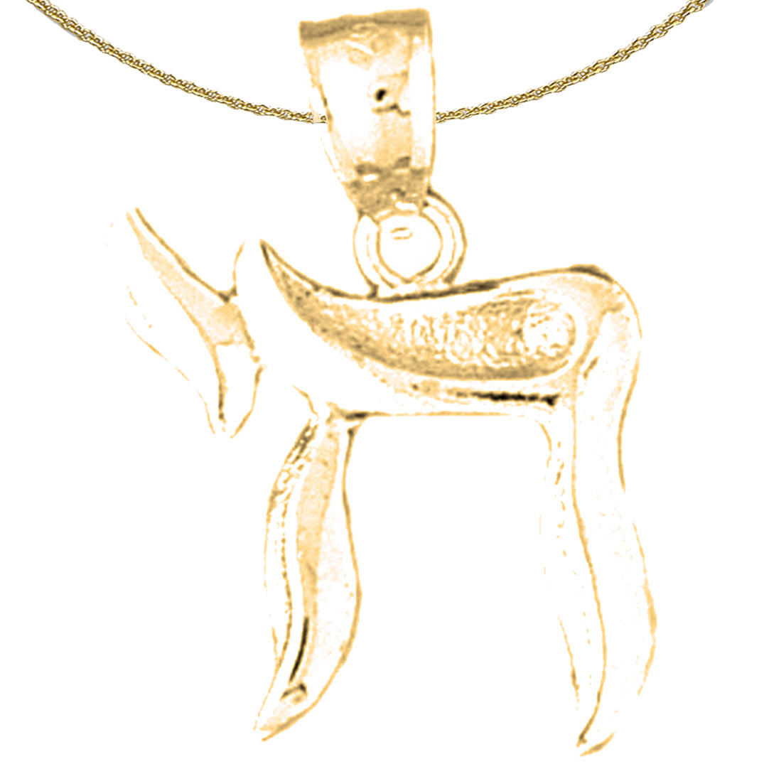 This is an elegant 14K or 18K gold chais pendant. This 14K or 18K gold pendant measures 15 mm in length by 19 mm in width. Measurement includes bale. JewelsObsession creates all gold jewelry in our state of the art manufacturing facility.