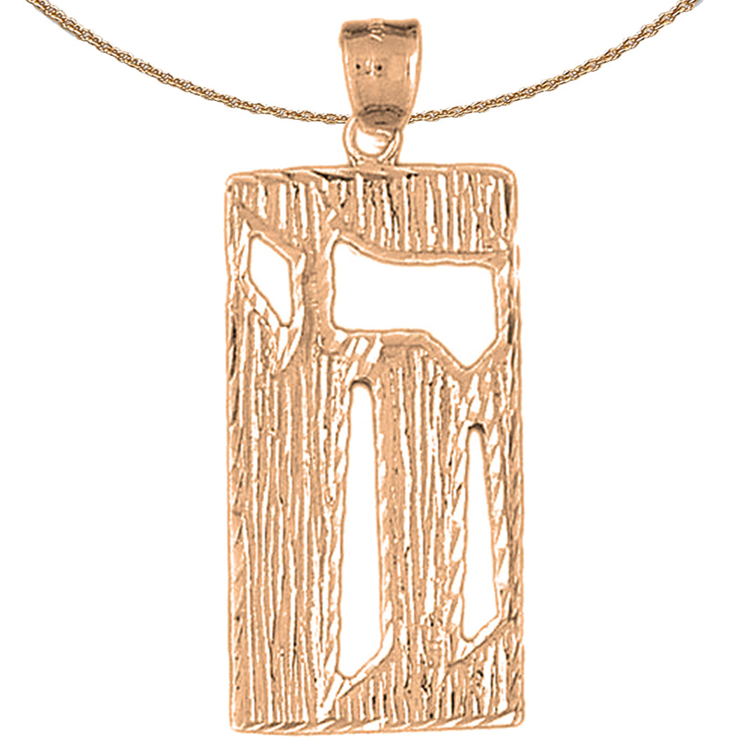 This is an elegant 10K, 14K or 18K gold chais pendant. This 10K, 14K or 18K gold pendant measures 47 mm in length by 20 mm in width. Measurement includes bale. JewelsObsession creates all gold jewelry in our state of the art manufacturing facility.