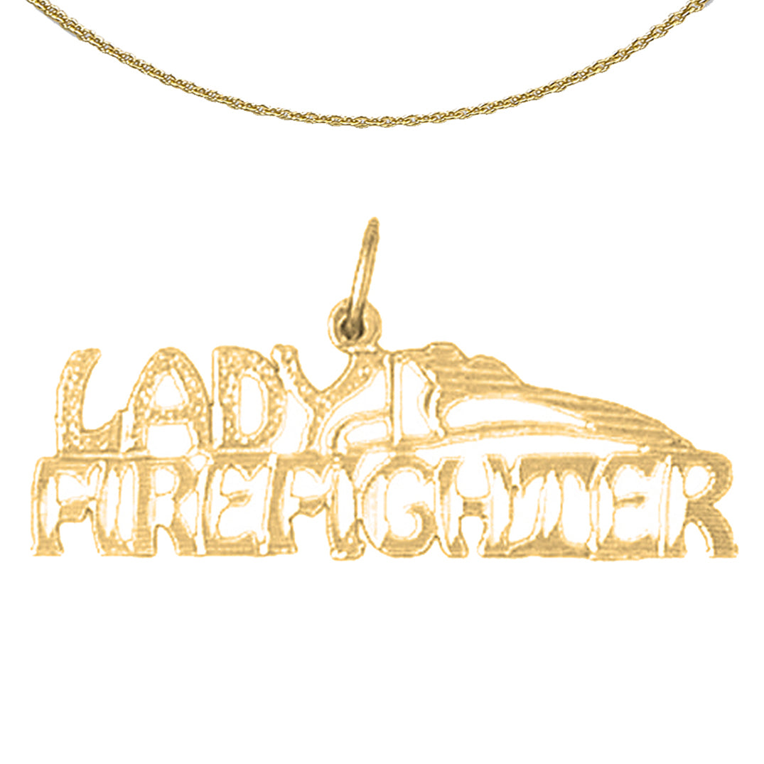 This is a stunning 14K or 18K gold lady figherfighter pendant. This 14K or 18K gold pendant measures in length by in width. Measurement includes bale. JewelsObsession creates all gold jewelry in our state of the art manufacturing facility.