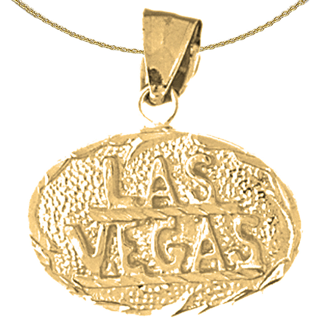 This is an elegant 10K, 14K or 18K gold las vegas pendant. This 10K, 14K or 18K gold pendant measures in length by in width. Measurement includes bale. JewelsObsession creates all gold jewelry in our state of the art manufacturing facility.
