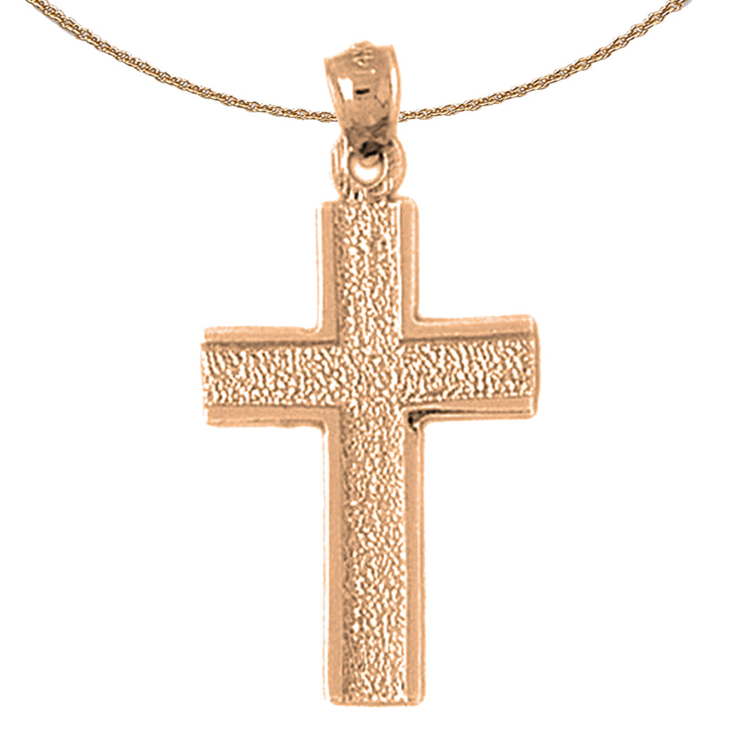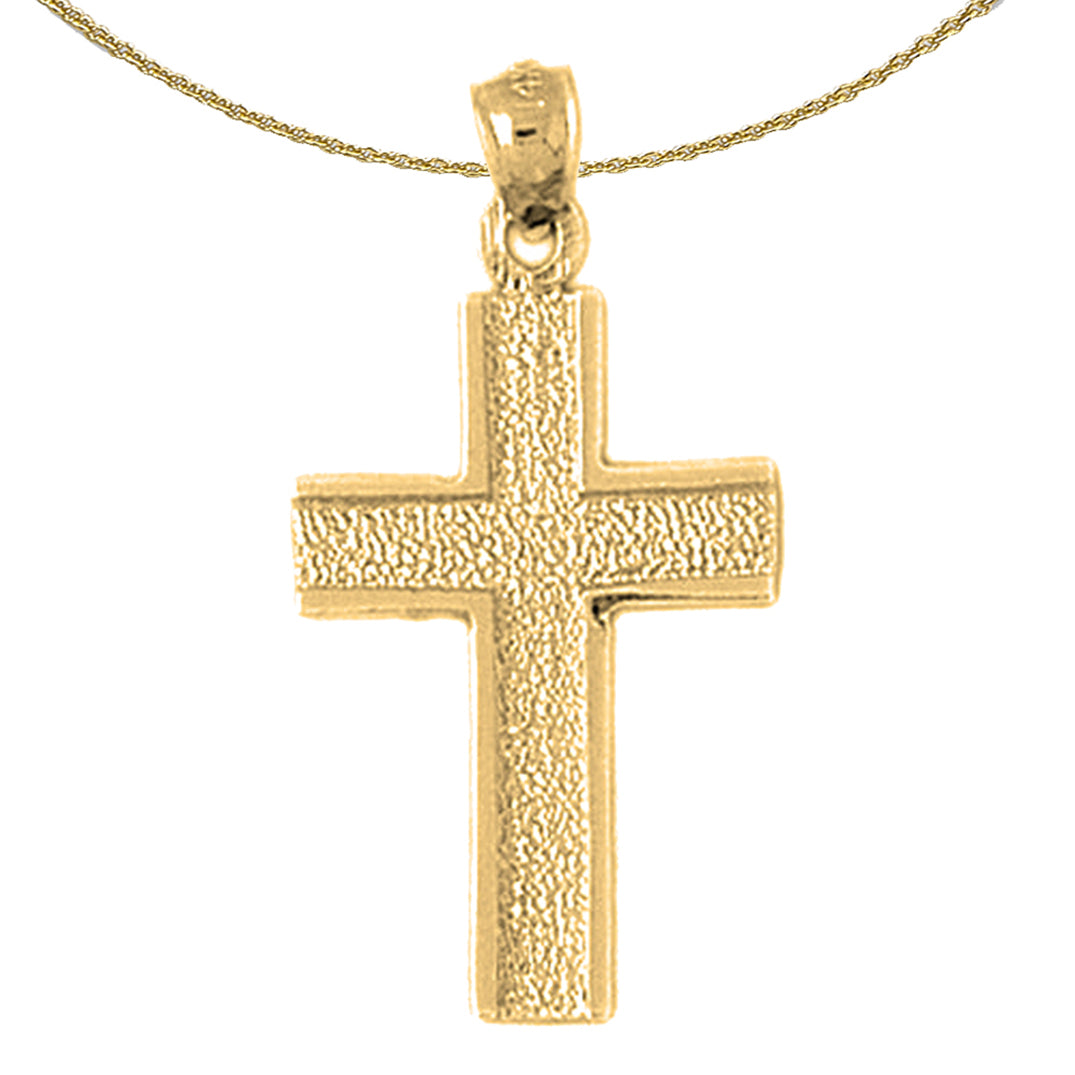 This is a beautiful 14K or 18K gold cross pendant. This 14K or 18K gold pendant measures 33 mm in length by 17 mm in width. Measurement includes bale. JewelsObsession creates all gold jewelry in our state of the art manufacturing facility.