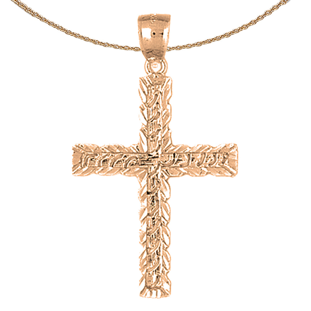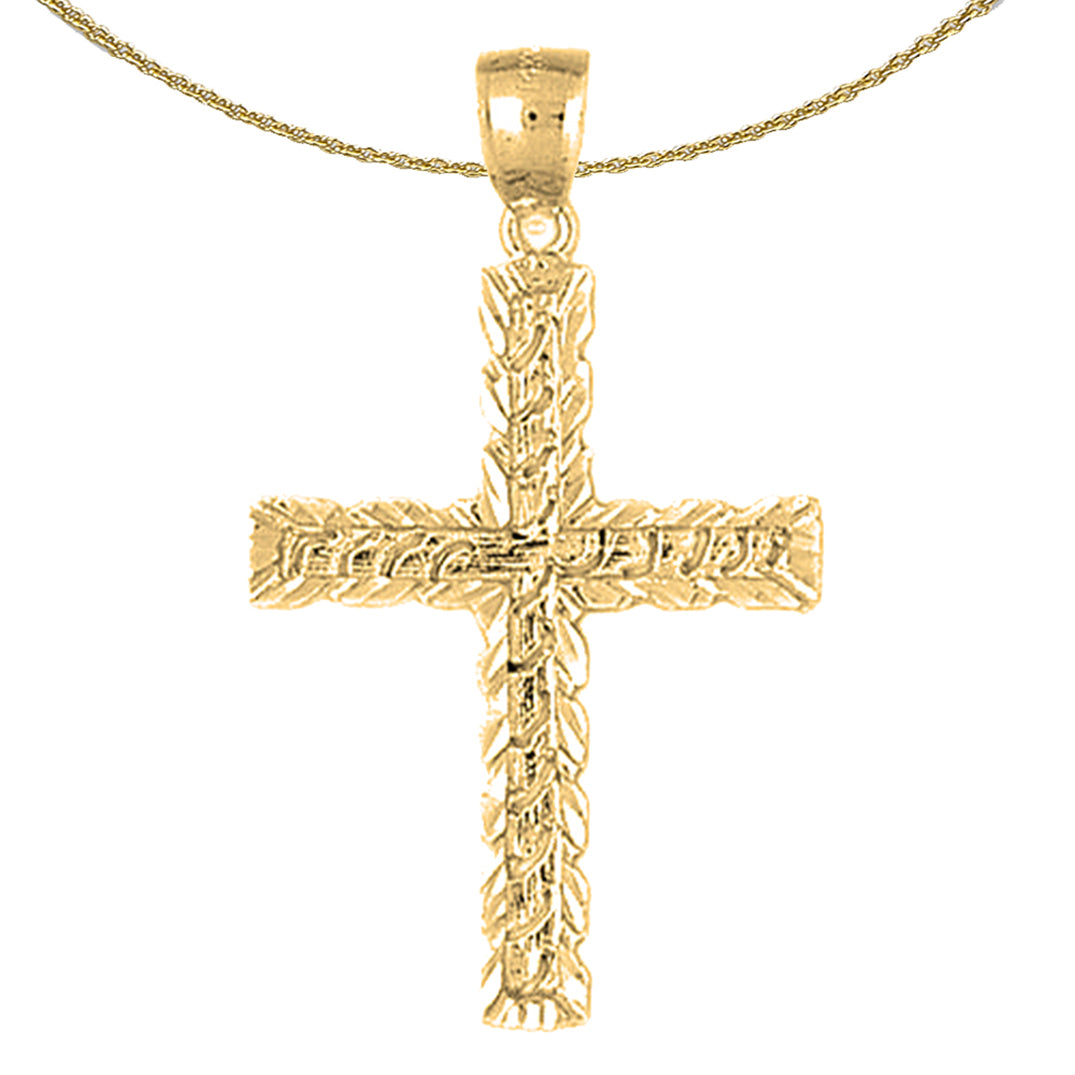 This is a stunning 10K, 14K or 18K gold cross pendant. This 10K, 14K or 18K gold pendant measures 45 mm in length by 26 mm in width. Measurement includes bale. JewelsObsession creates all gold jewelry in our state of the art manufacturing facility.