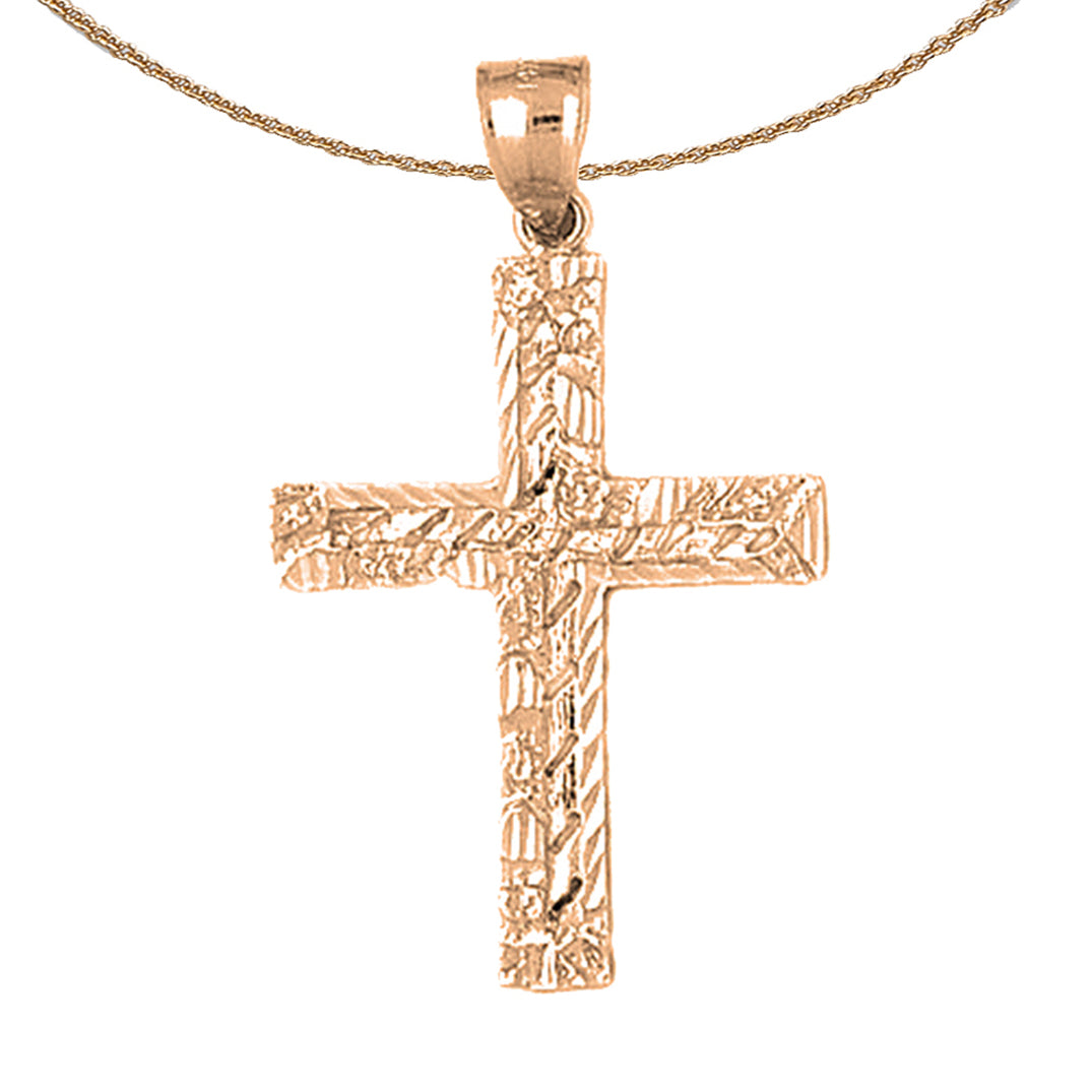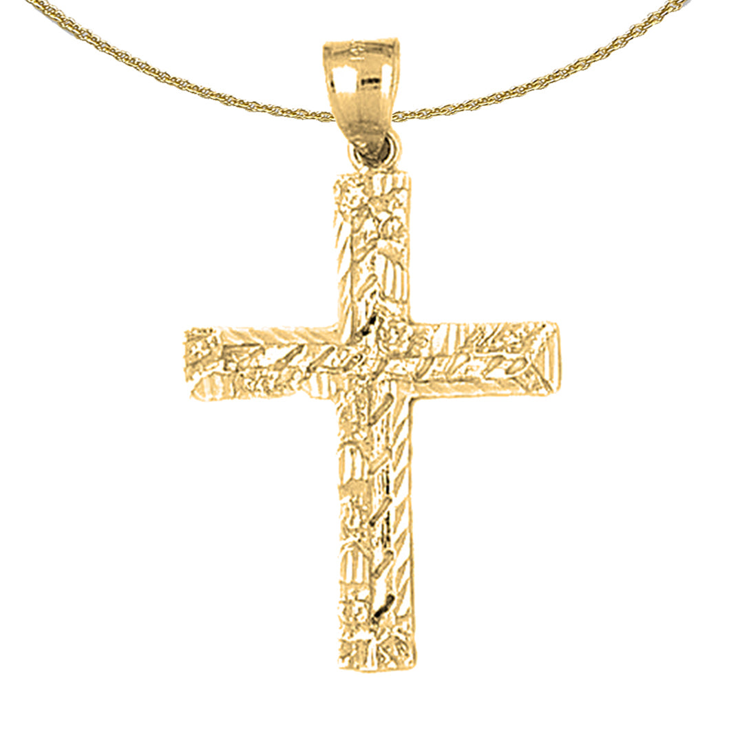 This gorgeous 10K, 14K or 18K gold cross pendant. This 10K, 14K or 18K gold pendant measures 46 mm in length by 27 mm in width. Measurement includes bale. JewelsObsession creates all gold jewelry in our state of the art manufacturing facility.