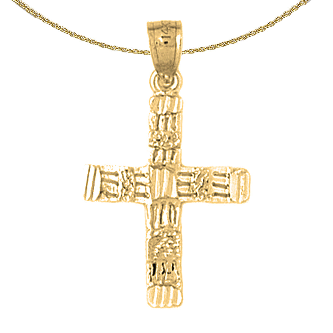 This is an elegant 14K or 18K gold cross pendant. This 14K or 18K gold pendant measures 30 mm in length by 18 mm in width. Measurement includes bale. JewelsObsession creates all gold jewelry in our state of the art manufacturing facility.