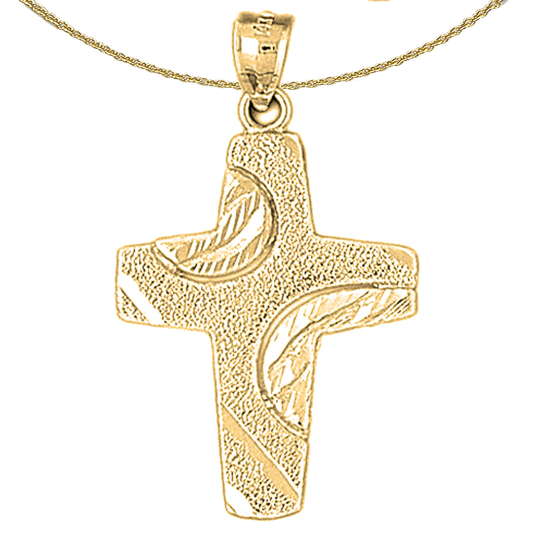 This is an elegant 10K, 14K or 18K gold cross pendant. This 10K, 14K or 18K gold pendant measures 40 mm in length by 24 mm in width. Measurement includes bale. JewelsObsession creates all gold jewelry in our state of the art manufacturing facility.