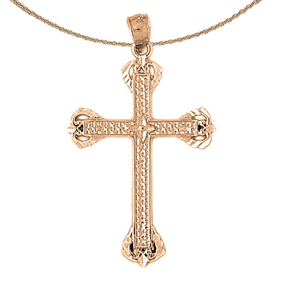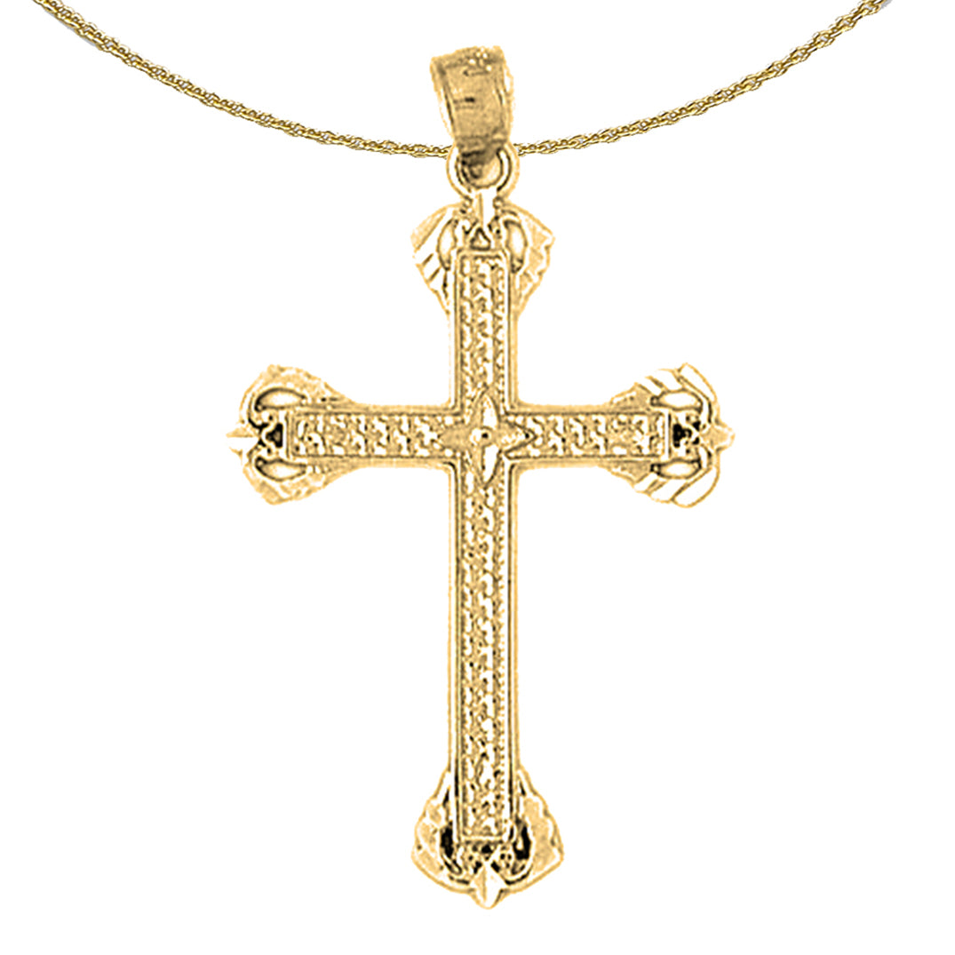 This is a beautiful 14K or 18K gold cross pendant. This 14K or 18K gold pendant measures 37 mm in length by 22 mm in width. Measurement includes bale. JewelsObsession creates all gold jewelry in our state of the art manufacturing facility.