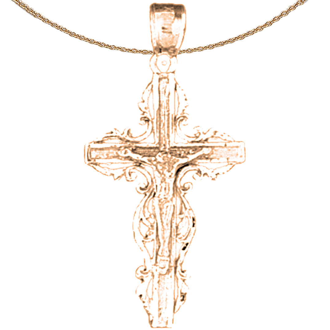 This is a beautiful 14K or 18K gold cross pendant. This 14K or 18K gold pendant measures 33 mm in length by 16 mm in width. Measurement includes bale. JewelsObsession creates all gold jewelry in our state of the art manufacturing facility.
