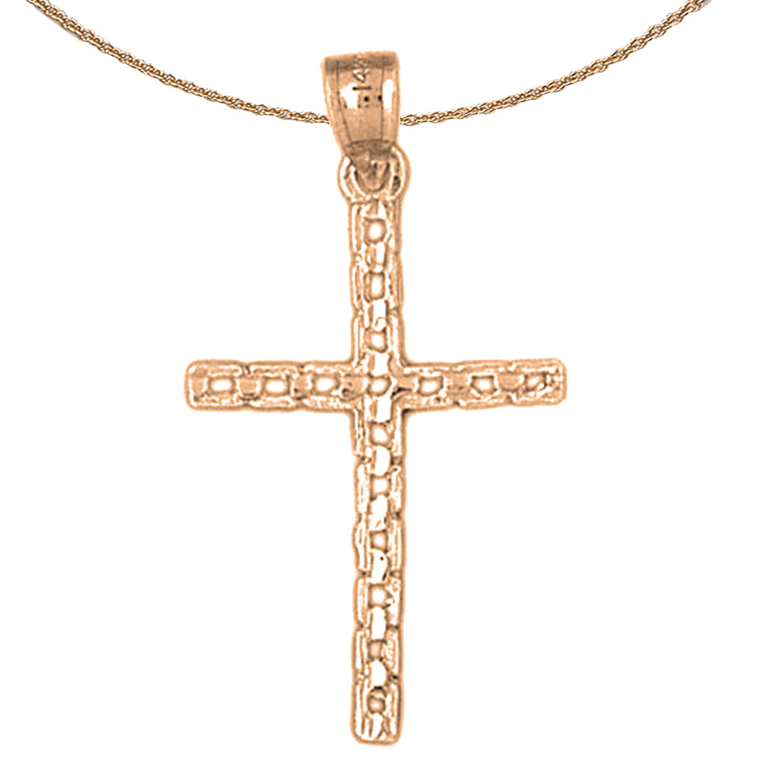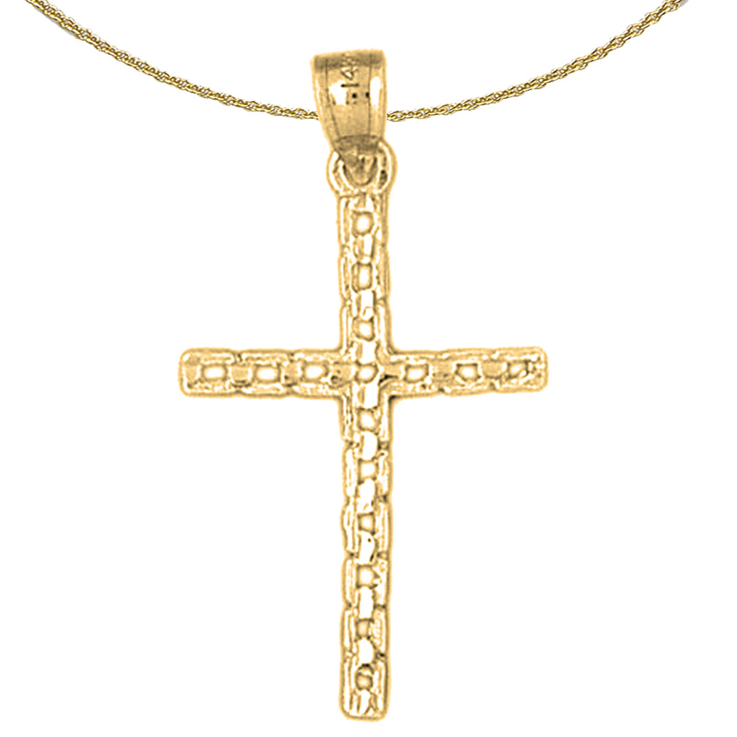 This gorgeous 14K or 18K gold cross pendant. This 14K or 18K gold pendant measures 35 mm in length by 20 mm in width. Measurement includes bale. JewelsObsession creates all gold jewelry in our state of the art manufacturing facility.