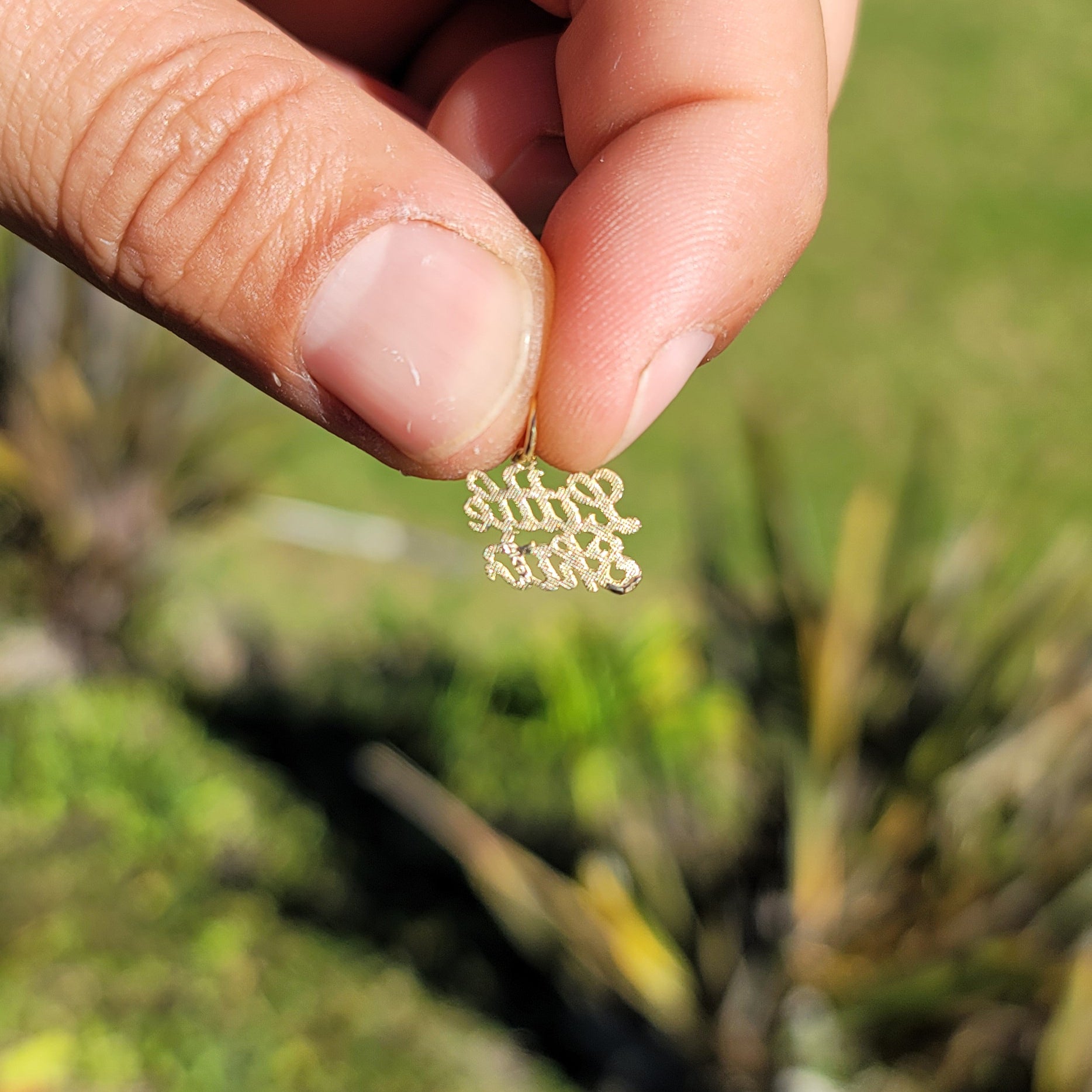 This is a stunning 14K or 18K gold saying pendant. This 14K or 18K gold pendant measures in length by in width. Measurement includes bale. JewelsObsession creates all gold jewelry in our state of the art manufacturing facility.