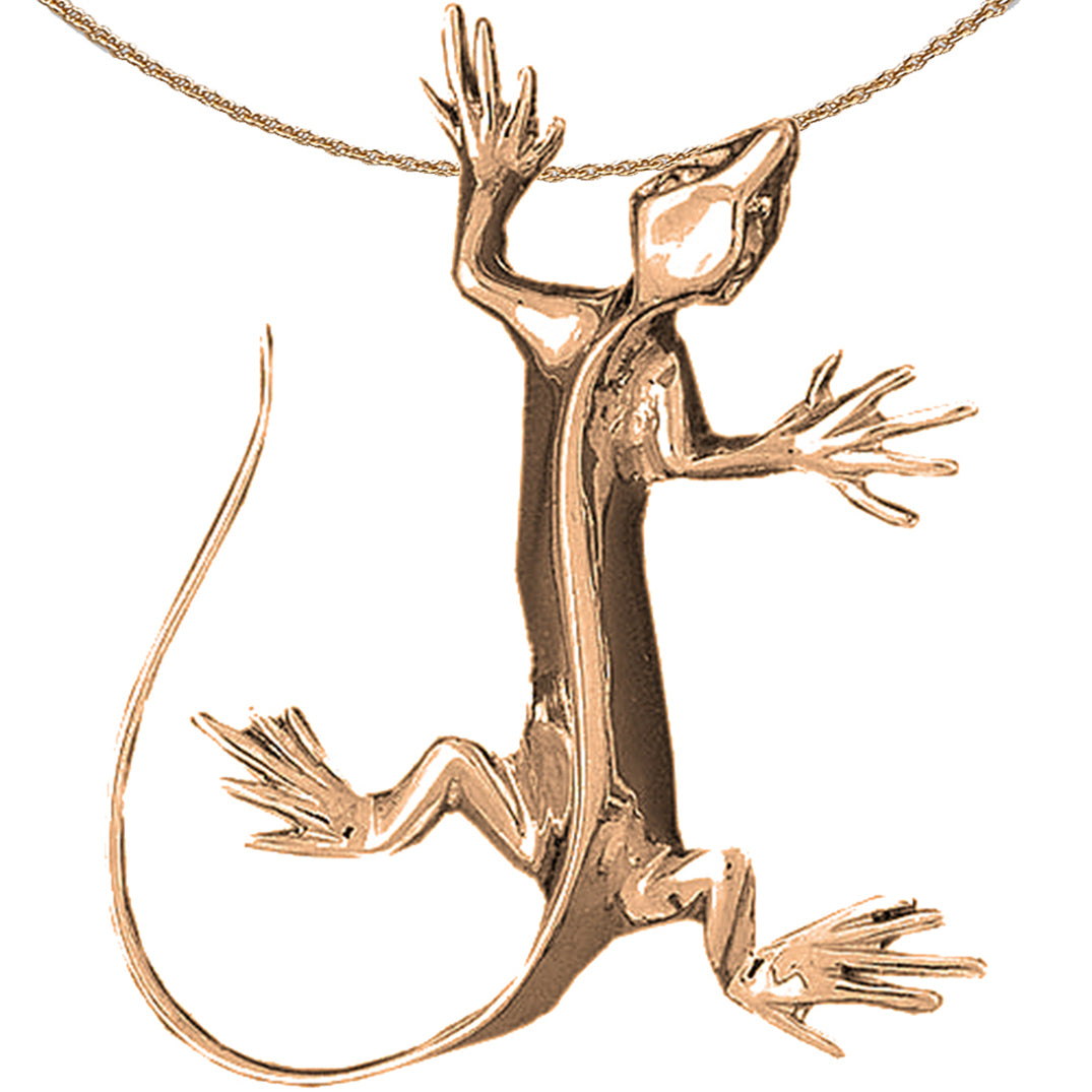 This is a beautiful 10K, 14K or 18K gold lizard pendant. This 10K, 14K or 18K gold pendant measures 50 mm in length by 40 mm in width. Measurement includes bale. JewelsObsession creates all gold jewelry in our state of the art manufacturing facility.