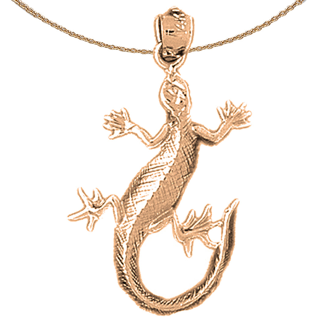 This gorgeous 10K, 14K or 18K gold lizard pendant. This 10K, 14K or 18K gold pendant measures 29 mm in length by 17 mm in width. Measurement includes bale. JewelsObsession creates all gold jewelry in our state of the art manufacturing facility.