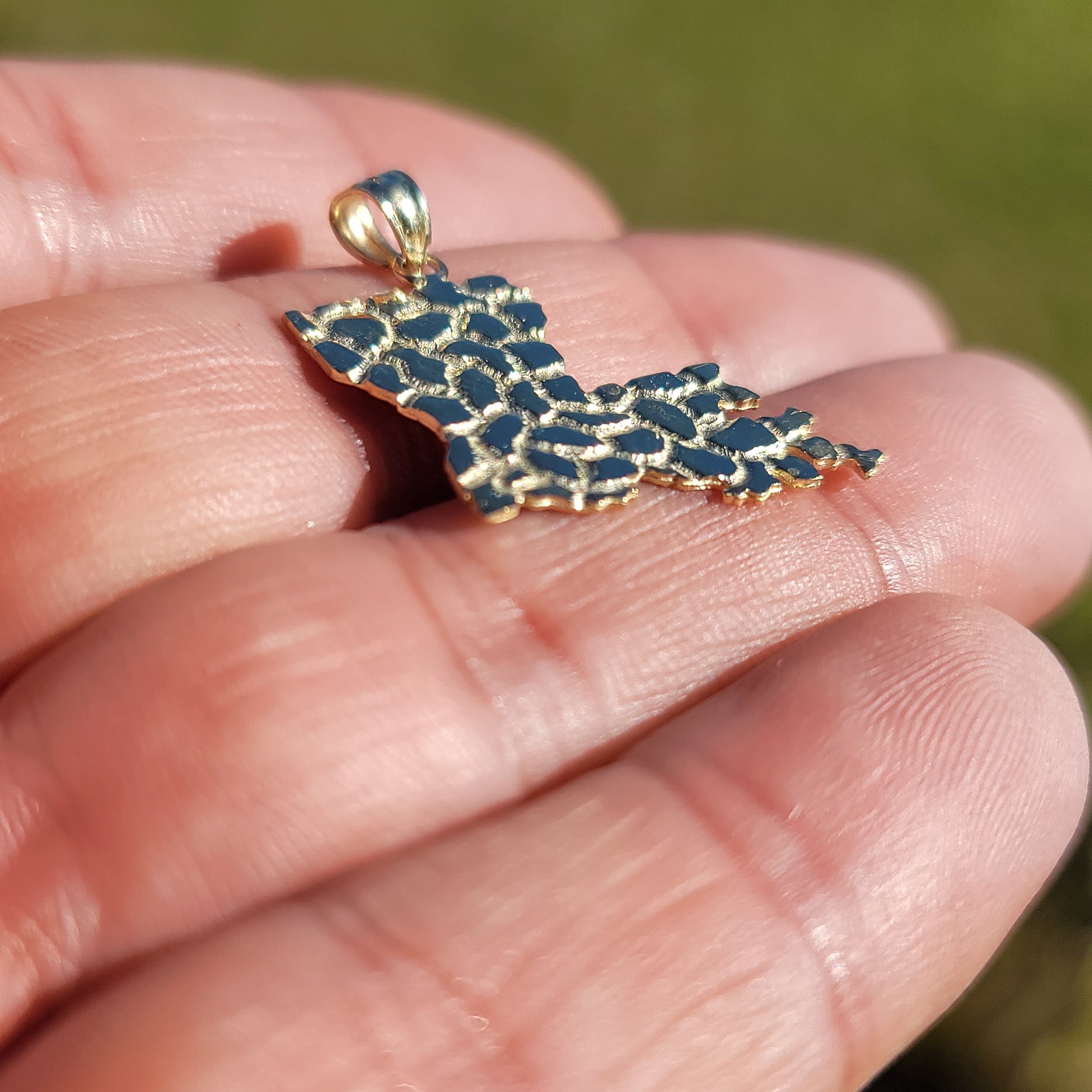 This is a beautiful 10K, 14K or 18K gold louisiana pendant. This 10K, 14K or 18K gold pendant measures 30 mm in length by 25 mm in width. Measurement includes bale. JewelsObsession creates all gold jewelry in our state of the art manufacturing facility.