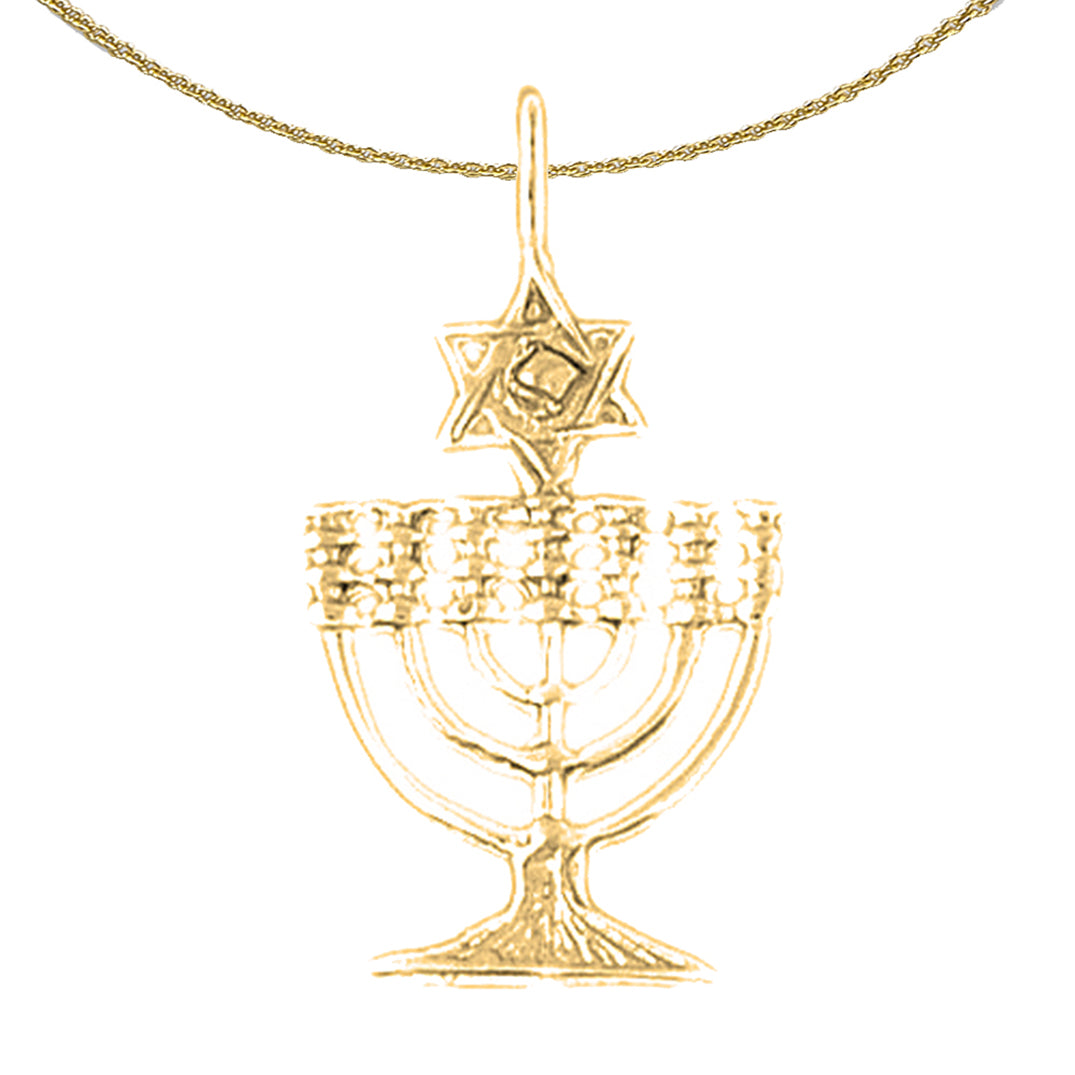 10K, 14K or 18K Gold Menorah with Star of David Pendant