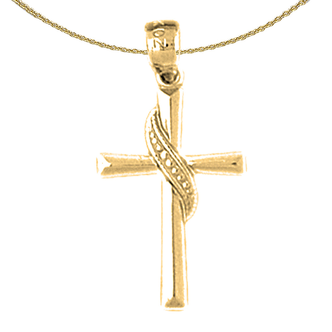 This is a stunning 14K or 18K gold cross pendant. This 14K or 18K gold pendant measures 25 mm in length by 13 mm in width. Measurement includes bale. JewelsObsession creates all gold jewelry in our state of the art manufacturing facility.