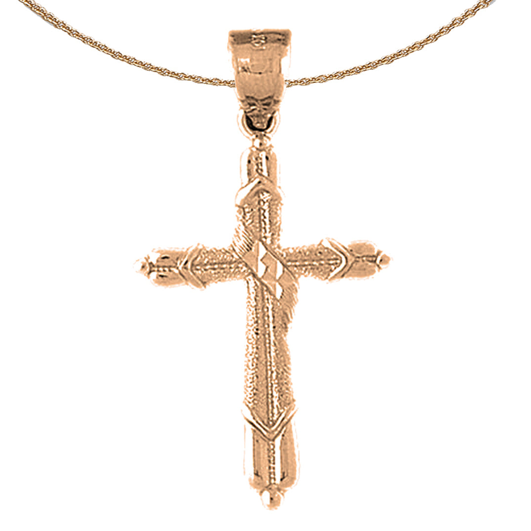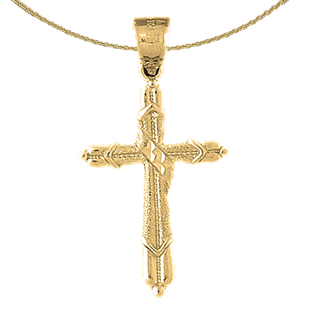 This gorgeous 10K, 14K or 18K gold cross pendant. This 10K, 14K or 18K gold pendant measures 40 mm in length by 22 mm in width. Measurement includes bale. JewelsObsession creates all gold jewelry in our state of the art manufacturing facility.