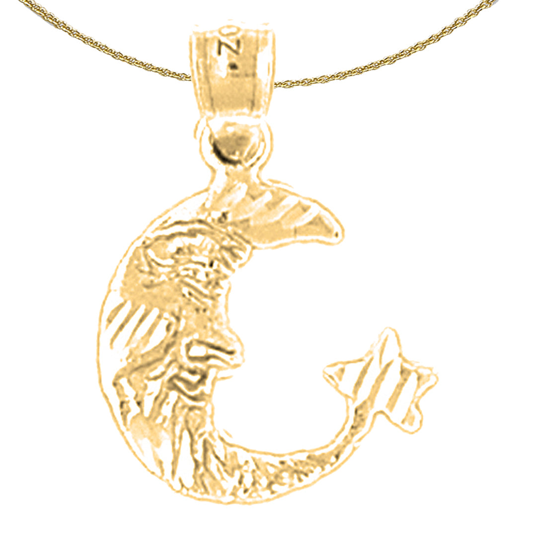 This is a stunning 14K or 18K gold moon with star pendant. This 14K or 18K gold pendant measures 21 mm in length by 15 mm in width. Measurement includes bale. JewelsObsession creates all gold jewelry in our state of the art manufacturing facility.