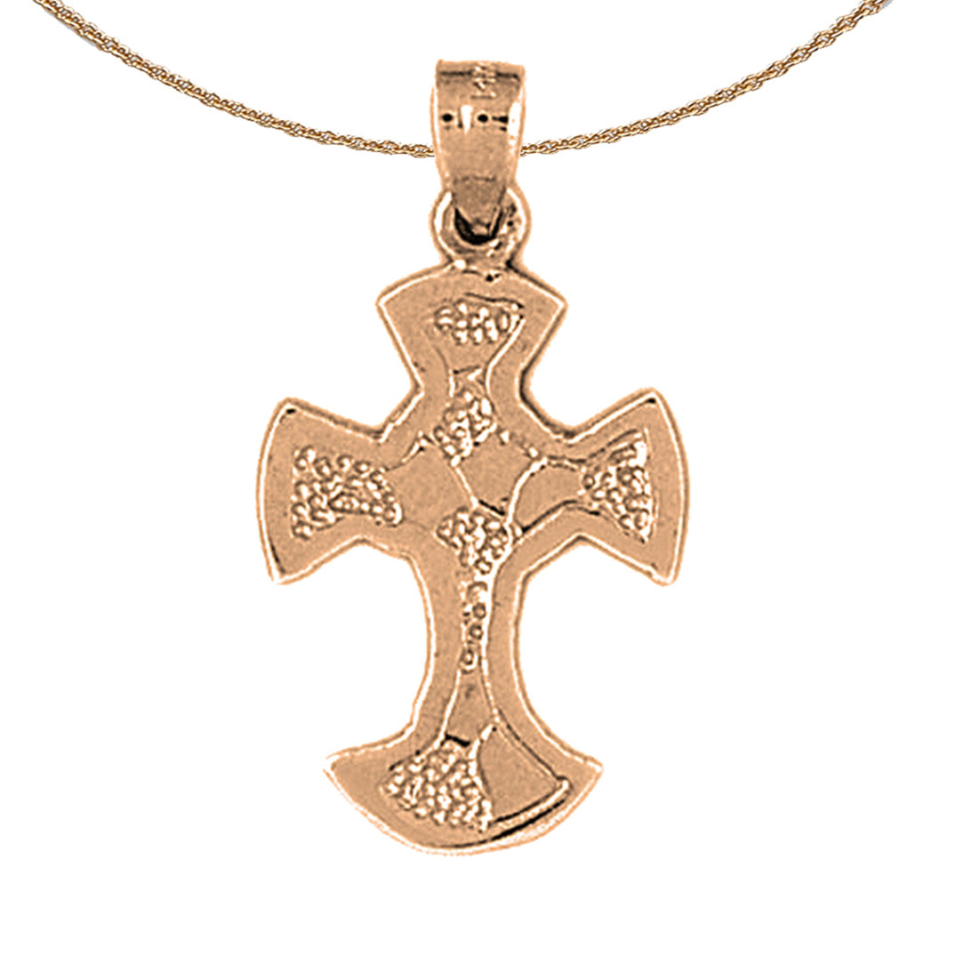 This is a stunning 10K, 14K or 18K gold cross pendant. This 10K, 14K or 18K gold pendant measures 31 mm in length by 17 mm in width. Measurement includes bale. JewelsObsession creates all gold jewelry in our state of the art manufacturing facility.
