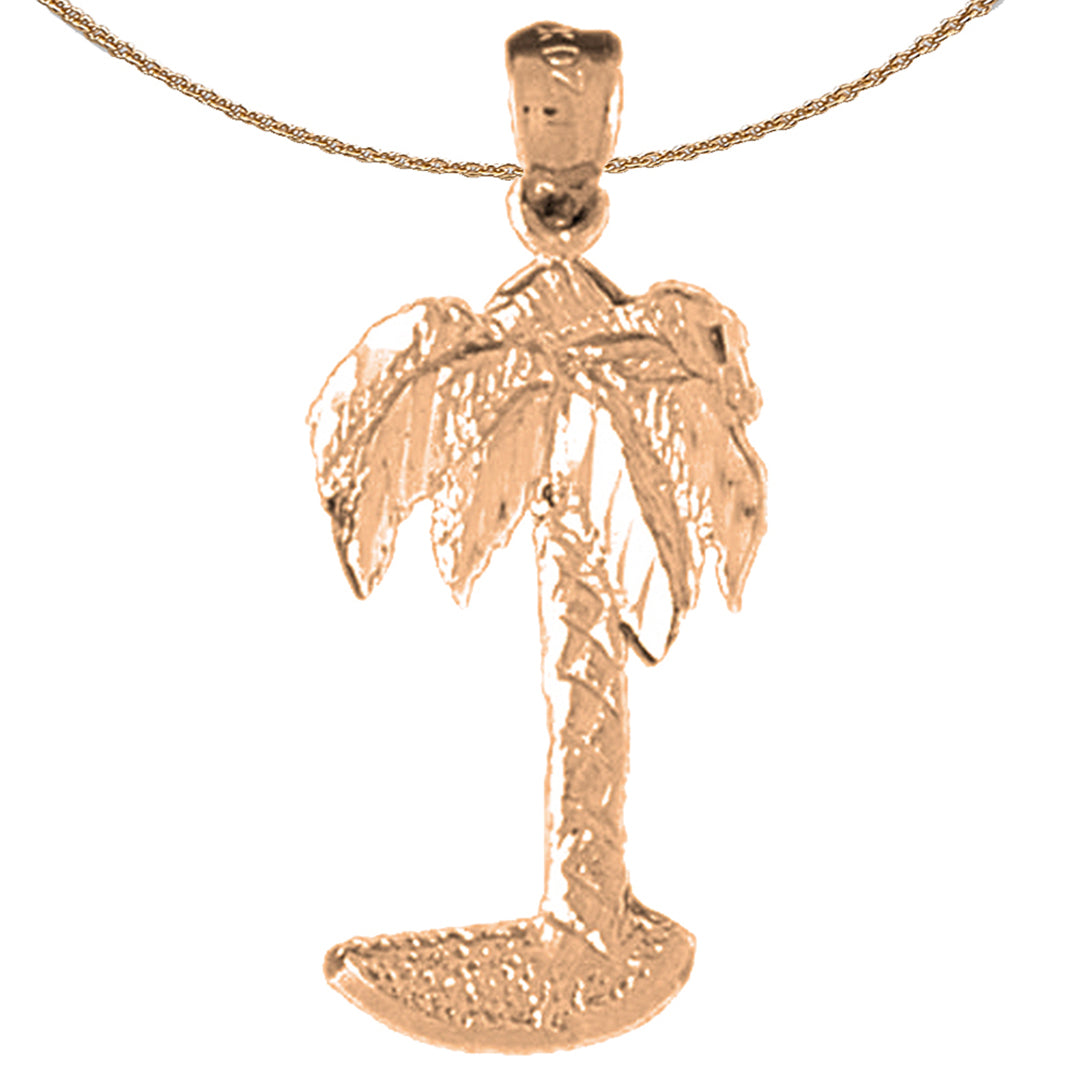 This is a stunning 14K or 18K gold palm tree pendant. This 14K or 18K gold pendant measures 33 mm in length by 15 mm in width. Measurement includes bale. JewelsObsession creates all gold jewelry in our state of the art manufacturing facility.