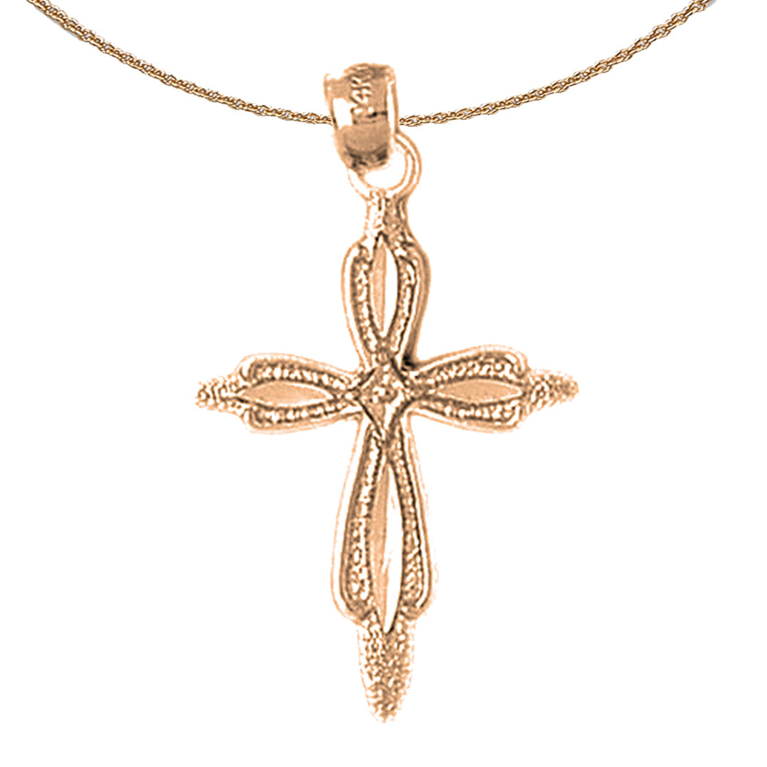 This is a stunning 14K or 18K gold cross pendant. This 14K or 18K gold pendant measures 33 mm in length by 20 mm in width. Measurement includes bale. JewelsObsession creates all gold jewelry in our state of the art manufacturing facility.