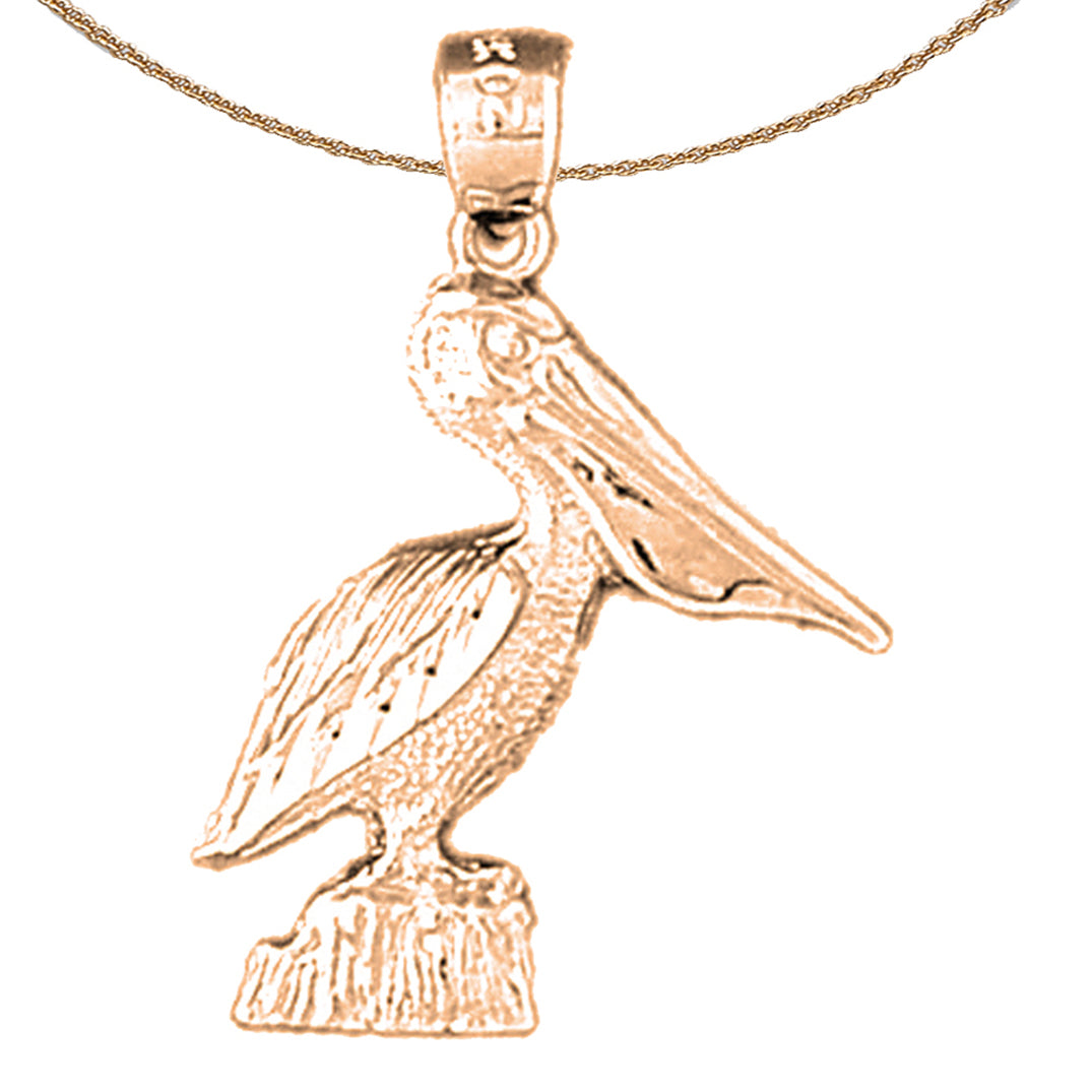 This is a beautiful 14K or 18K gold pelican pendant. This 14K or 18K gold pendant measures 30 mm in length by 21 mm in width. Measurement includes bale. JewelsObsession creates all gold jewelry in our state of the art manufacturing facility.