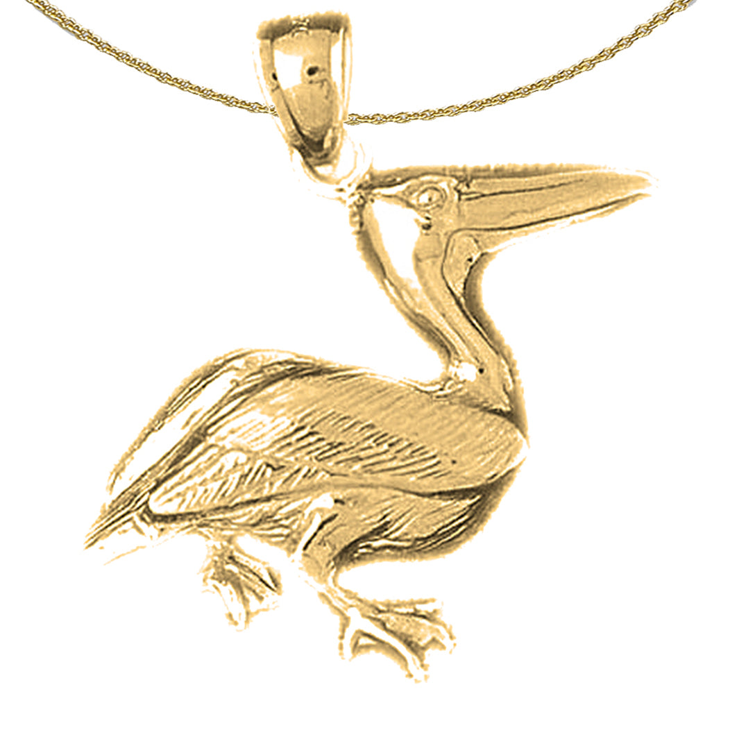 This gorgeous 10K, 14K or 18K gold pelican pendant. This 10K, 14K or 18K gold pendant measures 32 mm in length by 29 mm in width. Measurement includes bale. JewelsObsession creates all gold jewelry in our state of the art manufacturing facility.