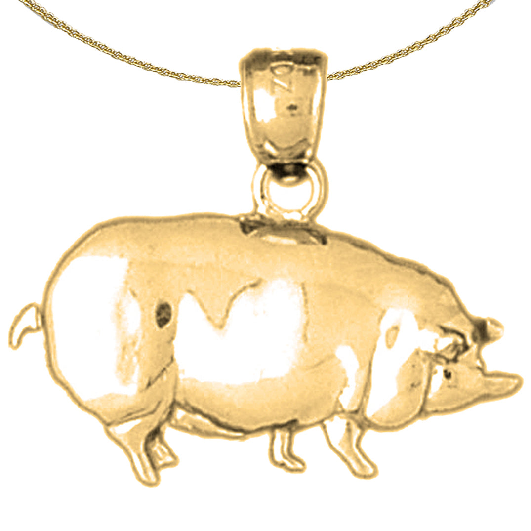 This is a beautiful 10K, 14K or 18K gold pig pendant. This 10K, 14K or 18K gold pendant measures 19 mm in length by 23 mm in width. Measurement includes bale. JewelsObsession creates all gold jewelry in our state of the art manufacturing facility.