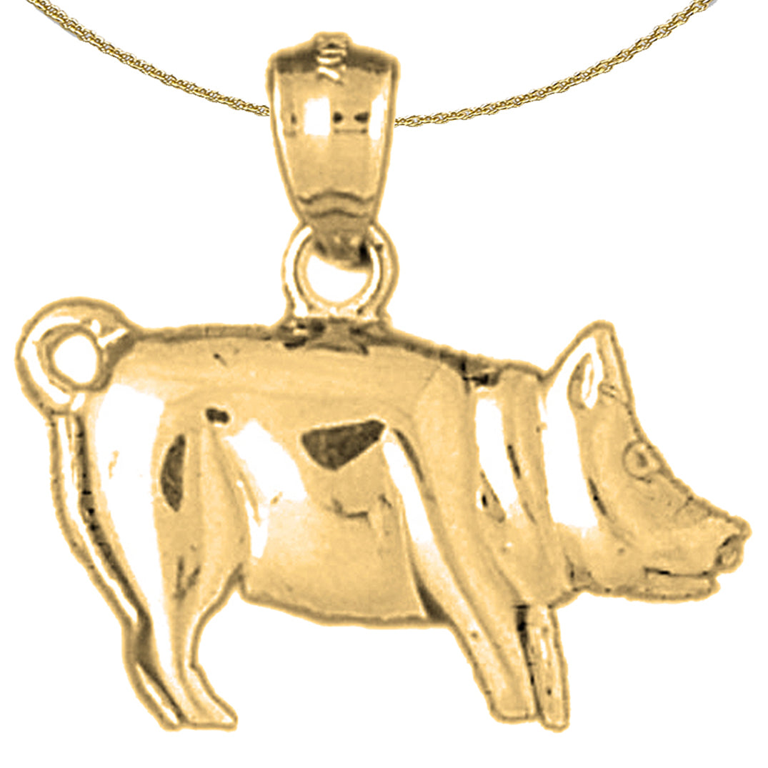 This gorgeous 10K, 14K or 18K gold pig pendant. This 10K, 14K or 18K gold pendant measures 20 mm in length by 21 mm in width. Measurement includes bale. JewelsObsession creates all gold jewelry in our state of the art manufacturing facility.